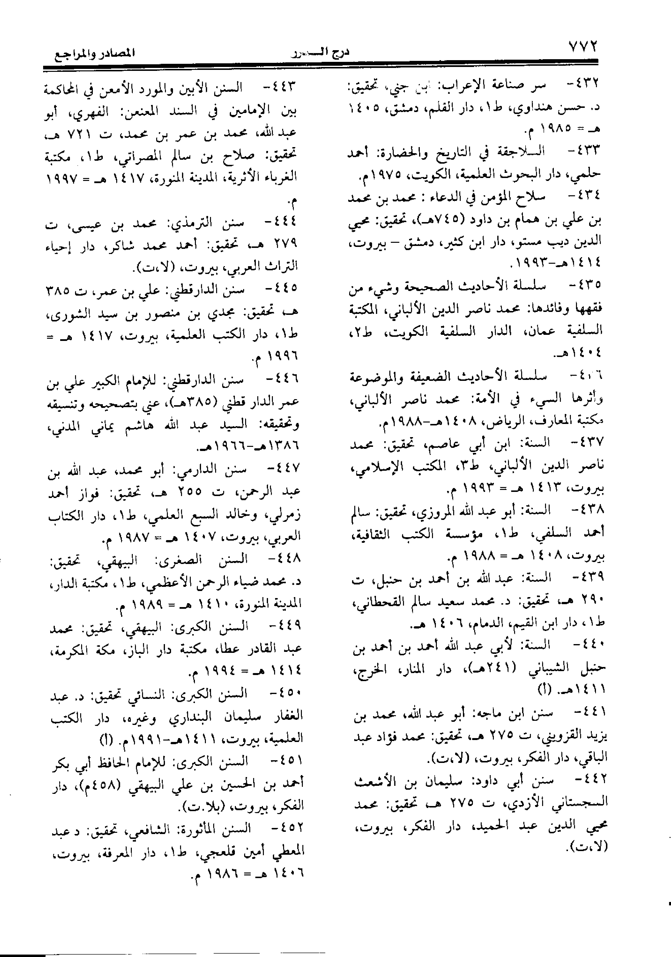 445 - سنن الدارقطني: علي بن عمر، ت 385 هـ، تحقيق: مجدي بن منصور بن سيد الشورى، ط 1، دار الكتب العلمية، بيروت،1417 هـ- 1996 م.