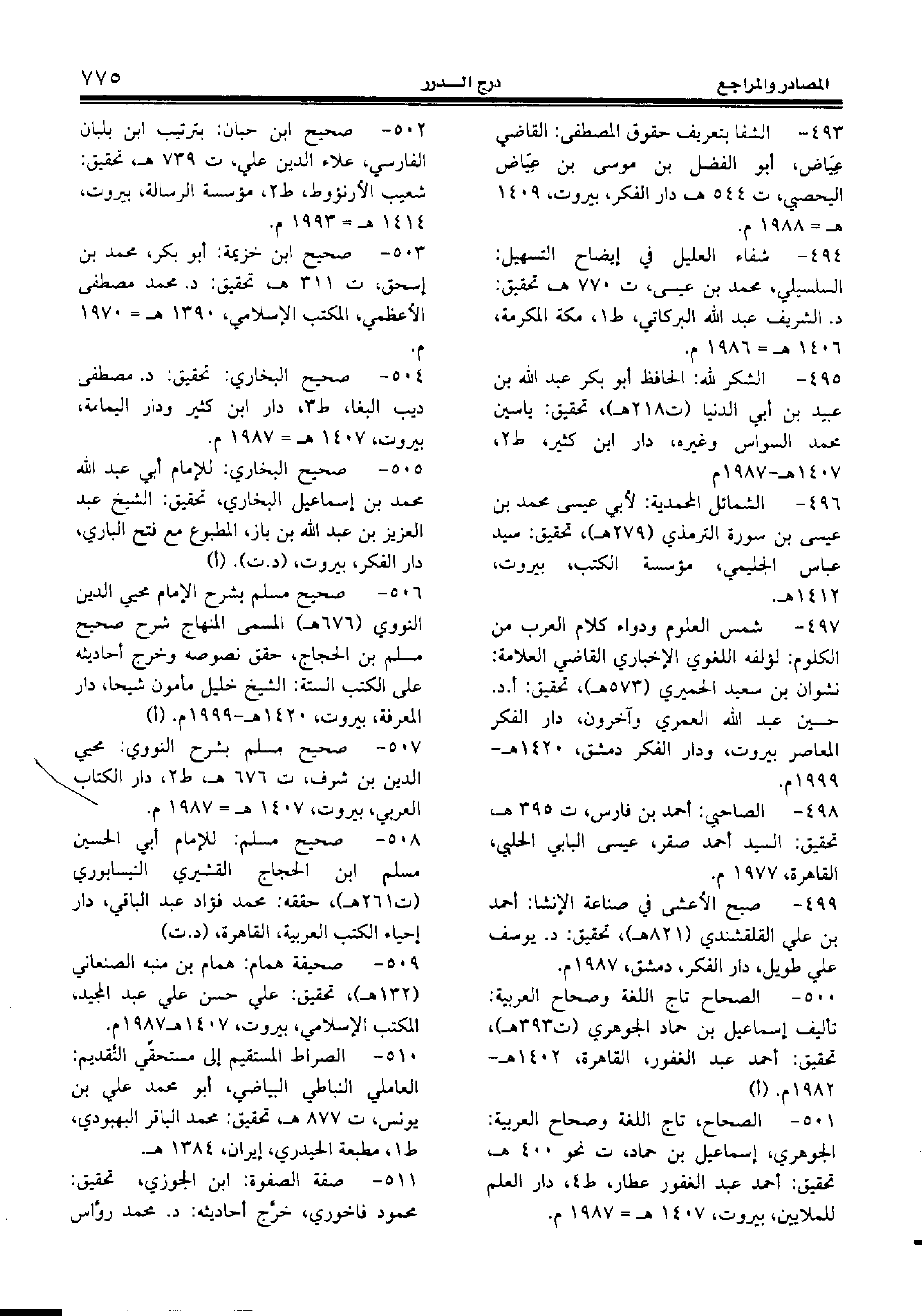 493 - الشفا بتعريف حقوق المصطفى: القاضي عياض، أبو الفضل بن موسى بن عياض اليحصبي، ت 544 هـ، دار الفكر، بيروت،1409 هـ-1988 م.