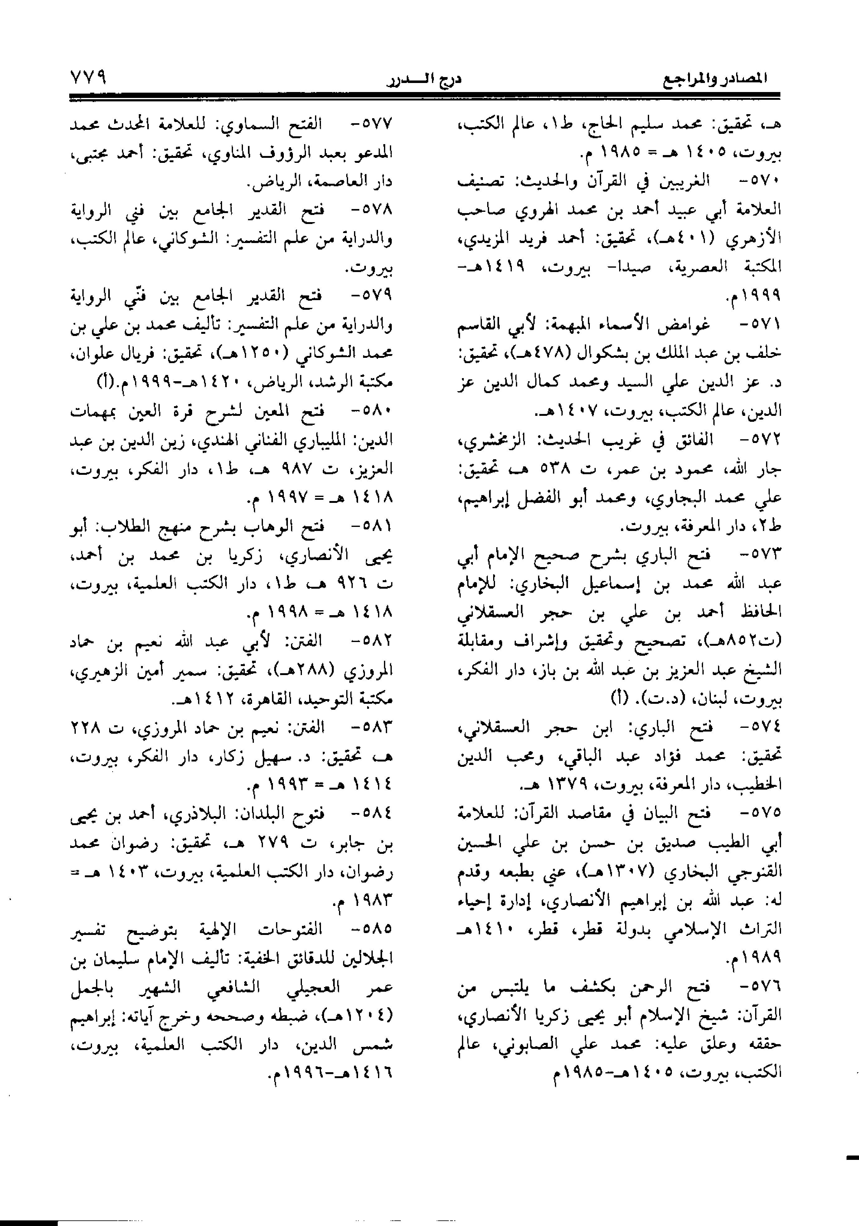 576 - فتح الرحمن بكشف ما يلتبس من القرآن: شيخ الإسلام أبو يحيى زكريا الأنصاري، حققه وعلق عليه: محمد علي الصابوني، عالم الكتب، بيروت،1405 هـ-1985 م
