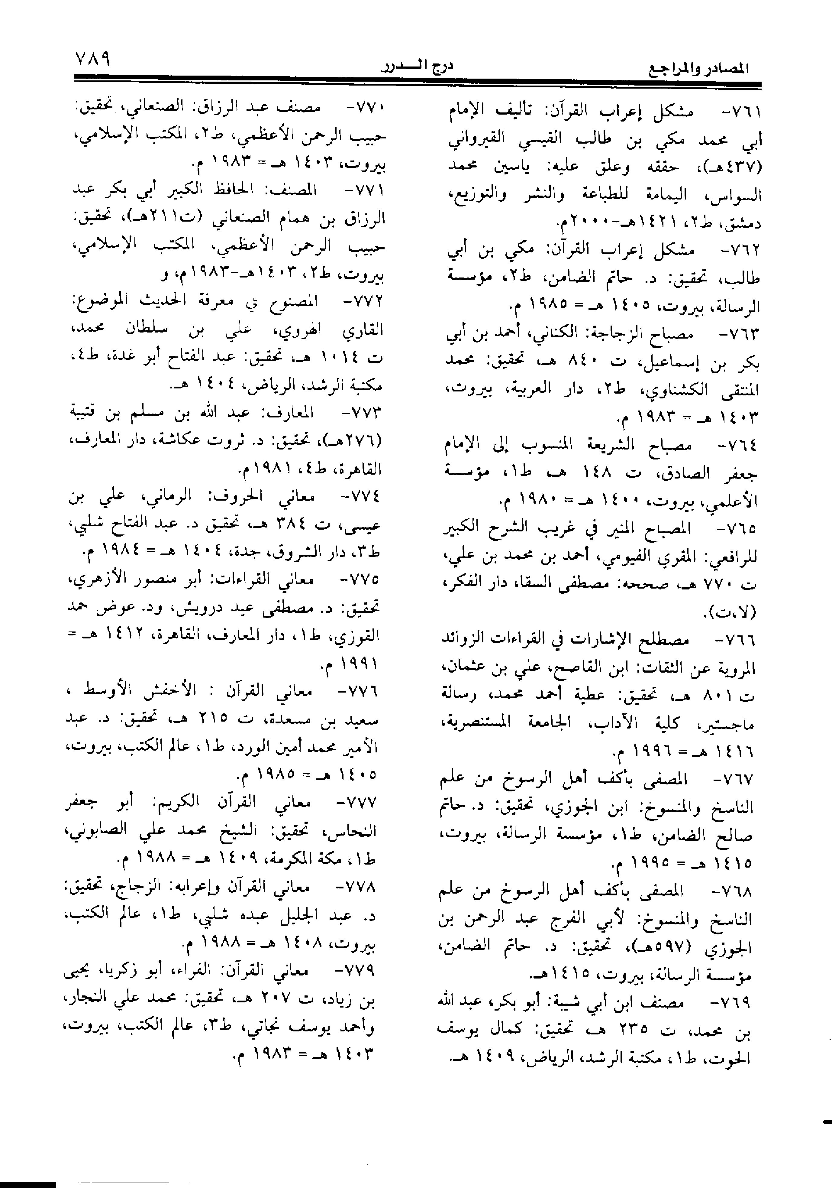 777 - معاني القرآن الكريم: أبو جعفر النحاس، تحقيق: الشيخ محمد علي الصابوني، ط 1، مكة المكرمة،1409 هـ-1988 م.