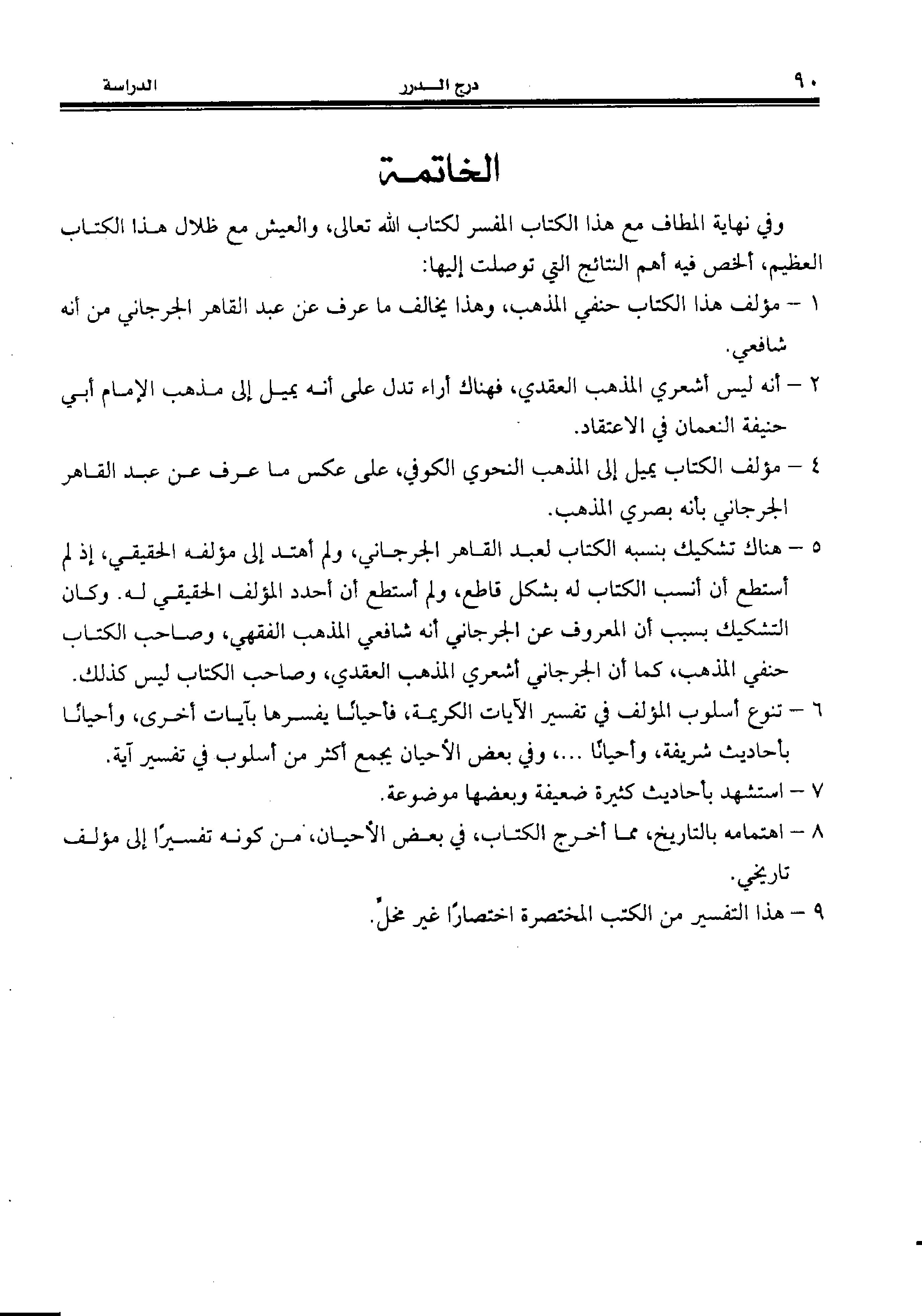 1 - مؤلف هذا الكتاب حنفي المذهب، وهذا يخالف ما عرف عن عبد القاهر الجرجاني من أنه شافعي.