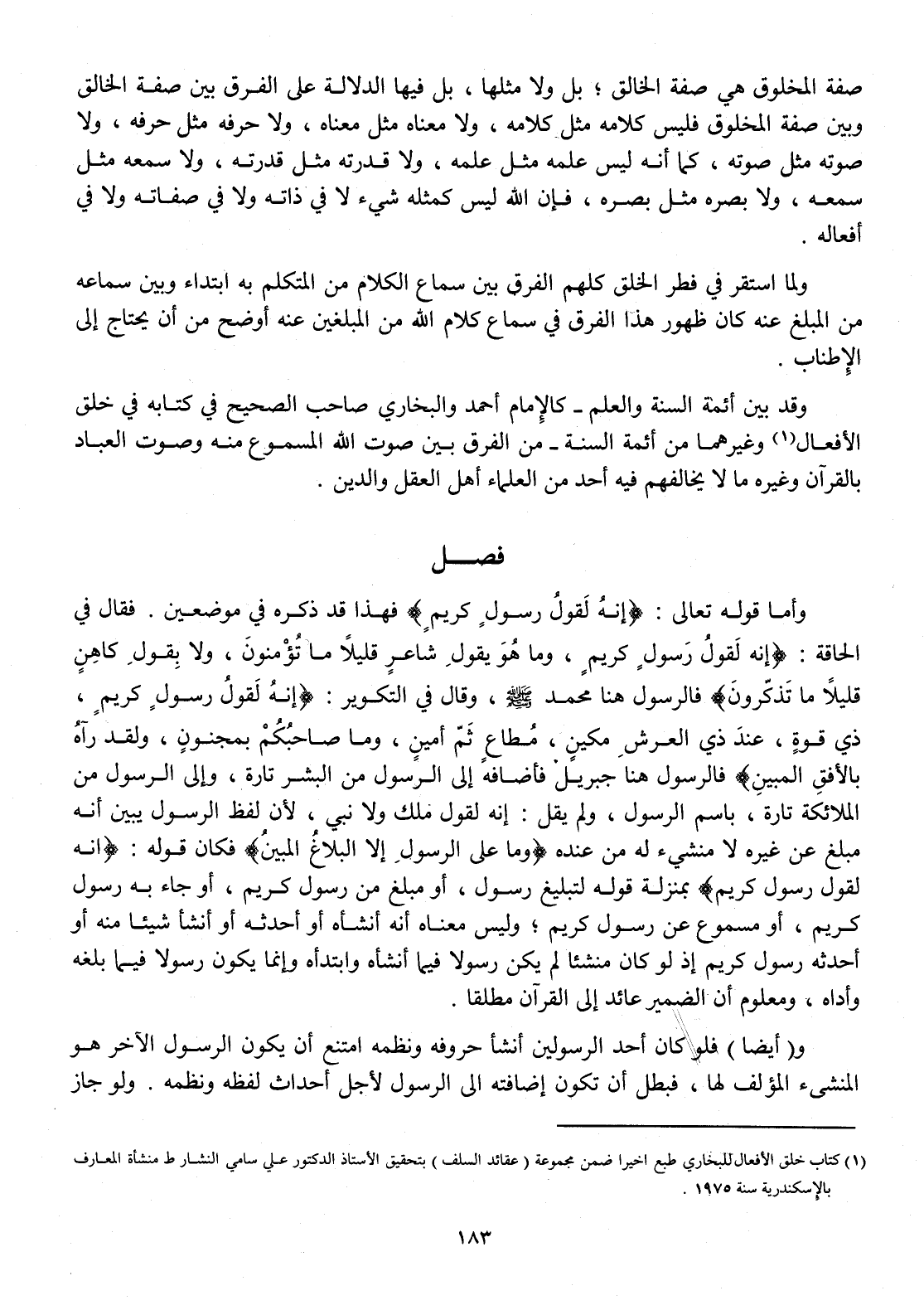 وَقد بَين أَئِمَّة السّنة وَالْعلم كَالْإِمَامِ أَحْمد وَالْبُخَارِيّ صَاحب الصَّحِيح فِي كِتَابه فِي خلق الْأَفْعَال وَغَيرهمَا من أَئِمَّة السّنة من الْفرق بَين صَوت الله المسموع مِنْهُ وَصَوت الْعباد بِالْقُرْآنِ وَغَيره مَا لَا يخالفهم فِيهِ أحد من الْعلمَاء أهل الْعقل وَالدّين