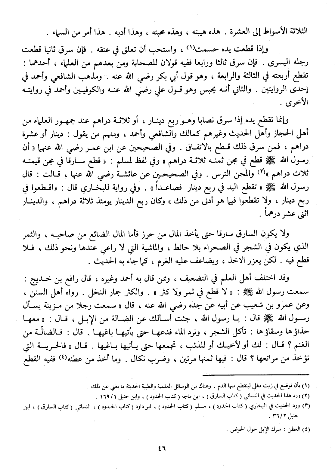 وَإِنَّمَا تقطع يَده إِذا سرق نِصَابا وَهُوَ ربع دِينَار أَو ثَلَاثَة دَرَاهِم عِنْد جُمْهُور الْعلمَاء من أهل الْحجاز وَأهل الحَدِيث وَغَيرهم كمالك وَالشَّافِعِيّ وَأحمد وَمِنْهُم من يَقُول دِينَار أَو عشرَة دَرَاهِم فَمن سرق ذَلِك قطع بالِاتِّفَاقِ وَفِي الصَّحِيحَيْنِ عَن ابْن عمر رَضِي الله عَنْهُمَا