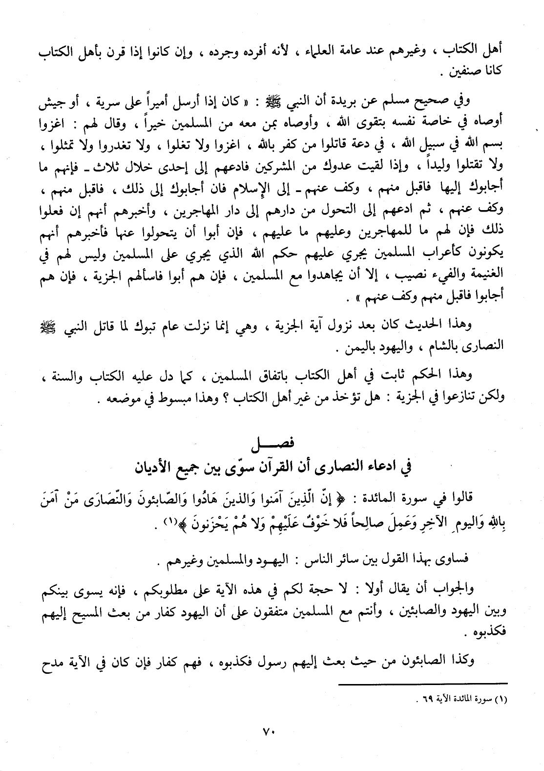 فصل فِي ادِّعَاء النَّصَارَى أَن الْقُرْآن سوى بَين الْأَدْيَان