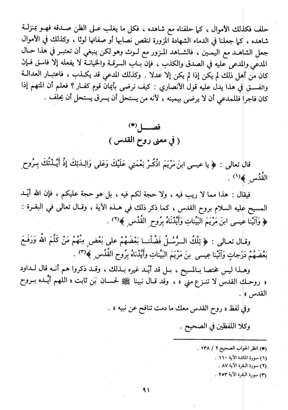 فَيُقَال هَذَا مِمَّا لَا ريب فِيهِ وَلَا حجَّة لكم فِيهِ بل هُوَ حجَّة عَلَيْكُم فَإِن الله أيد الْمَسِيح عَلَيْهِ السَّلَام بِروح الْقُدس كَمَا ذكر ذَلِك فِي هَذِه الْآيَة وَقَالَ تَعَالَى فِي الْبَقَرَة {وآتينا عِيسَى ابْن مَرْيَم الْبَينَات وأيدناه بِروح الْقُدس}