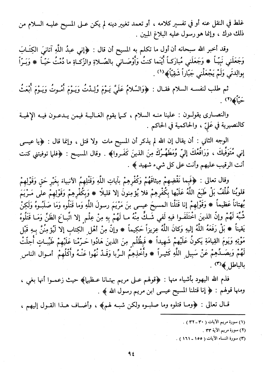 وَالنَّصَارَى يَقُولُونَ علينا مِنْهُ السَّلَام كَمَا يقوم الغالية فِيمَن يدعونَ فِيهِ الإلهية كالنصيرية فِي عَليّ والحاكمية فِي الْحَاكِم