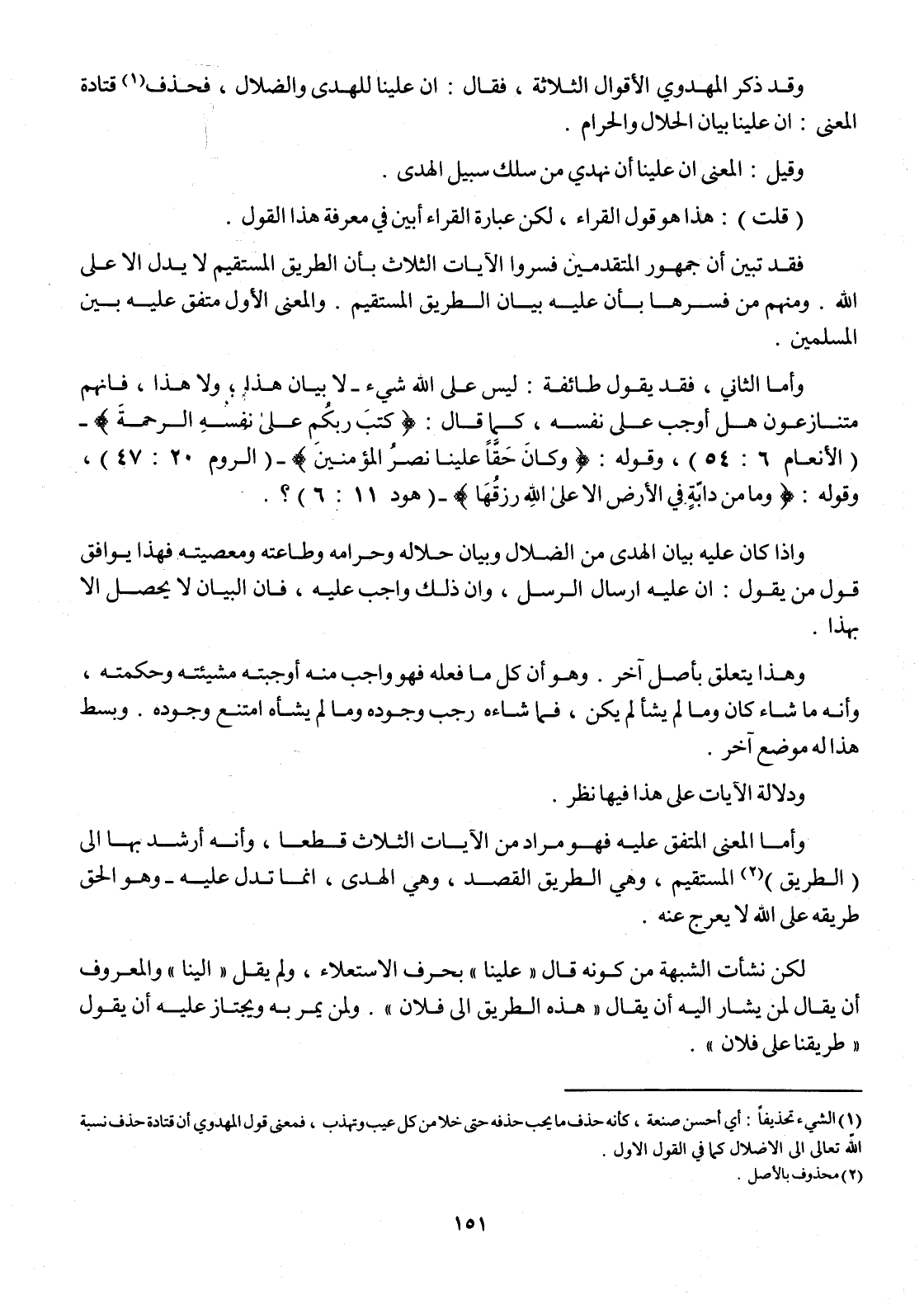 وَأما الثَّانِي فقد يَقُول طَائِفَة لَيْسَ على الله شَيْء لَا بَيَان هَذَا وَلَا هَذَا فَإِنَّهُم متنازعون هَل أوجب على نَفسه كَمَا قَالَ {كتب ربكُم على نَفسه الرَّحْمَة} الْأَنْعَام 6 54 وَقَوله {وَكَانَ حَقًا علينا نصر الْمُؤمنِينَ} الرّوم 20 47 وَقَوله {وَمَا من دَابَّة فِي الأَرْض إِلَّا على الله رزقها} هود 11 6