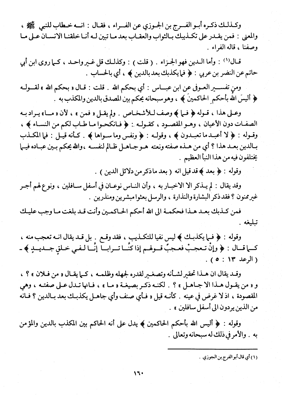 وَمن تَفْسِير الْعَوْفِيّ عَن ابْن عَبَّاس أَي بِحكم الله قلت قَالَ بِحكم الله لقَوْله {أَلَيْسَ الله بِأَحْكَم الْحَاكِمين} وَهُوَ سُبْحَانَهُ يحكم بَين الْمُصدق بِالدّينِ والمكذب بِهِ