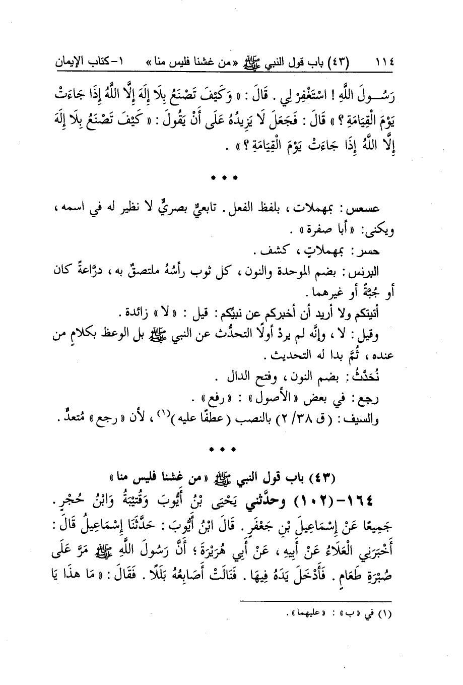 [97] عسعس بمهملات بِلَفْظ الْفِعْل تَابِعِيّ بَصرِي لَا نَظِير لَهُ فِي اسْمه ويكنى أَبَا صفرَة حسر بمهملات كشف الْبُرْنُس بِضَم الْمُوَحدَة وَالنُّون كل ثوب رَأسه ملتصق بِهِ دراعة كَانَ أَو جُبَّة أَو غَيرهمَا أتيتكم وَلَا أُرِيد أَن أخْبركُم عَن نَبِيكُم قيل لَا زَائِدَة وَقيل لَا وَإنَّهُ لم يرد أَولا التحدث عَن النَّبِي صلى الله عَلَيْهِ وَسلم بل الْوَعْظ بِكَلَام من عِنْده ثمَّ بدا لَهُ التحديث نُحدث بِضَم النُّون وَفتح الدَّال رَجَعَ فِي بعض الْأُصُول رفع وَالسيف بِالنّصب عطفا عَلَيْهِ لِأَن رَجَعَ مُتَعَدٍّ