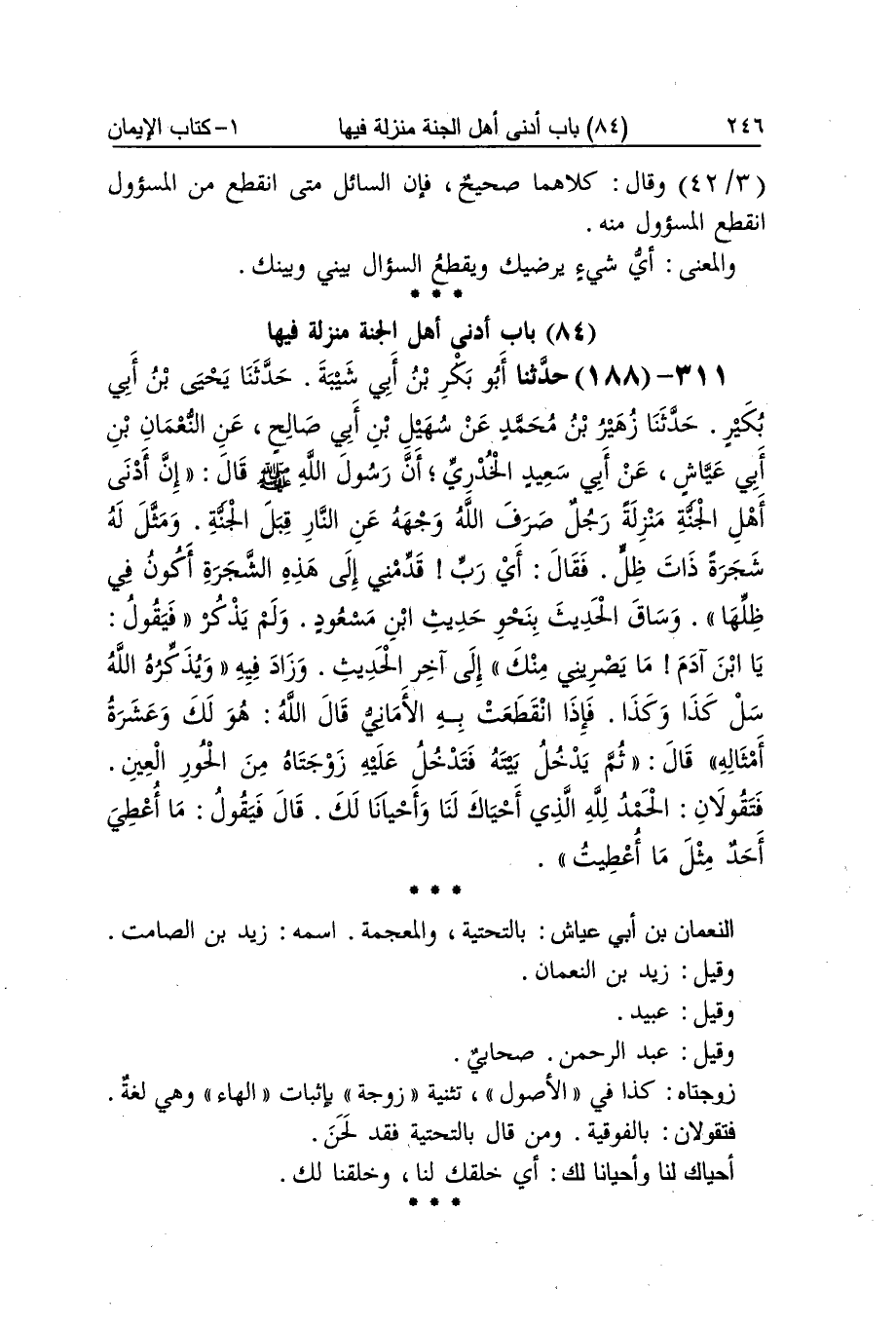 [187] ويكبو أَي يسْقط على وَجهه وتسفعه النَّار بِفَتْح التَّاء وَالْفَاء بَينهمَا مُهْملَة سَاكِنة أَي تضرب وَجهه فتسوده أَي تُؤثر فِيهِ أثرا مَا لَا صَبر لَهُ عَلَيْهِ كَذَا فِي الْأُصُول فِي الْمَرَّتَيْنِ الْأَوليين وَفِي الثَّالِثَة فِي بعض الْأُصُول وَفِي أَكْثَرهَا فِيهَا عَلَيْهَا على تَأْوِيل مَا بِنِعْمَة وعَلى بِمَعْنى عَن مَا يصريني مِنْك بِفَتْح الْيَاء وَسُكُون الصَّاد الْمُهْملَة أَي يقطع مسألتك مني والصري الْقطع وَفِي غير مُسلم مَا يصريك مني قَالَ الْحَرْبِيّ وَهُوَ الصَّوَاب وَأنكر مَا فِي مُسلم ورده النَّوَوِيّ وَقَالَ كِلَاهُمَا صَحِيح فَإِن السَّائِل مَتى انْقَطع من المسؤول انْقَطع المسؤول مِنْهُ وَالْمعْنَى أَي شَيْء يرضيك وَيقطع السُّؤَال بيني وَبَيْنك