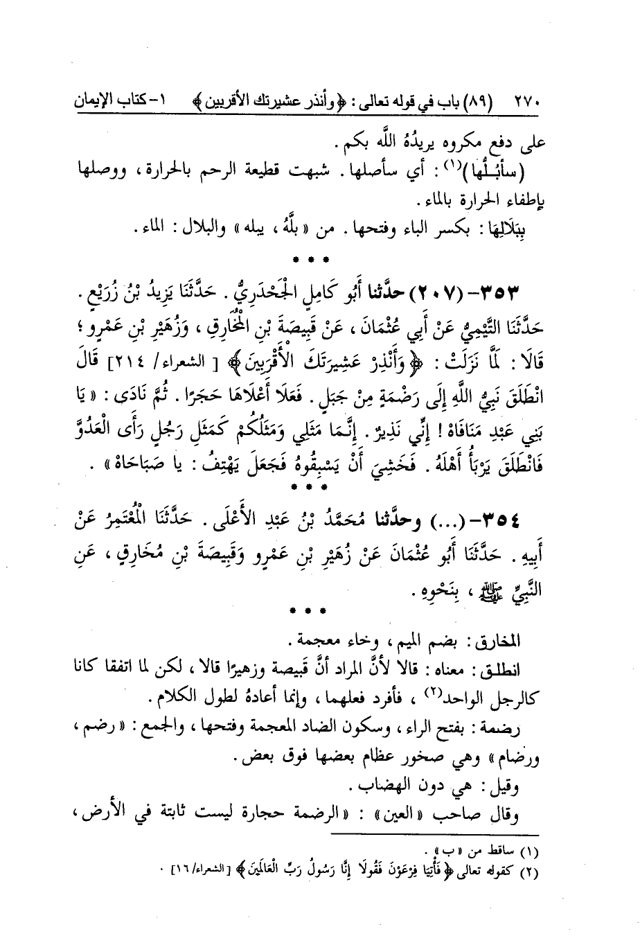 [204] لؤَي بهمز ودونه يَا فَاطِمَة فِي أَكثر الْأُصُول يَا فاطم بالترخيم لَا أملك لكم من الله شَيْئا مَعْنَاهُ لَا تتكلوا على قَرَابَتي فَإِنِّي لَا أقدر على دفع مَكْرُوه يُريدهُ الله بكم سَأَبلُّهَا أَي سأصلها شبهت قطيعة الرَّحِم بالحرارة وَوَصلهَا بإطفاء الْحَرَارَة بِالْمَاءِ بِبلَالِهَا بِكَسْر الْبَاء وَفتحهَا من بله يبله والبلال المَاء