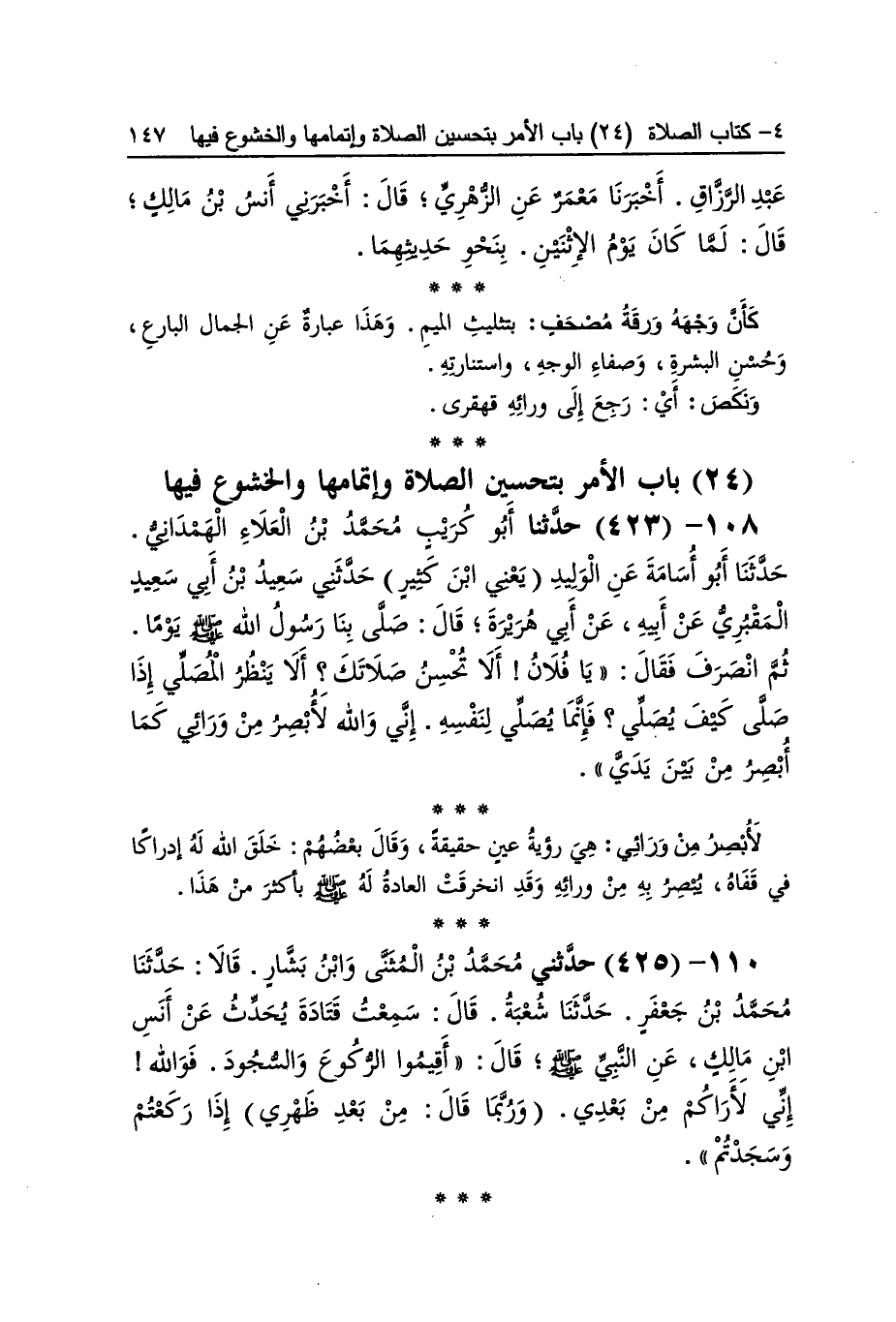 [419] كَأَن وَجهه ورقة مصحف بِتَثْلِيث اللَّام وَهَذَا عبارَة عَن الْجمال البارع وَحسن الْبشرَة وصفاء الْوَجْه واستنارته ونكص أَي رَجَعَ إِلَى وَرَائه قهقرى