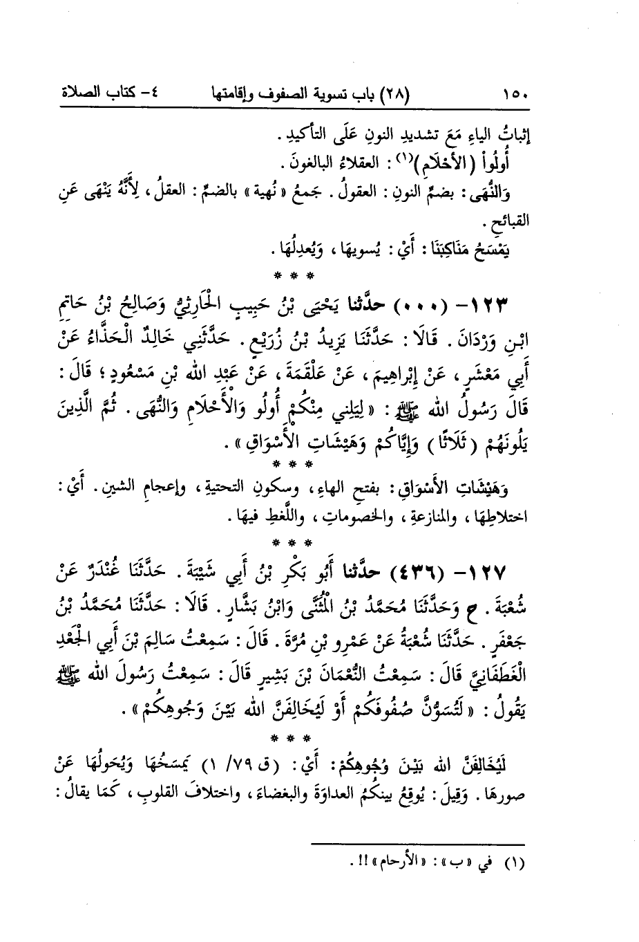 [432] ليلني بِكَسْر اللامين وَتَخْفِيف النُّون من غير يَاء قبل النُّون وَيجوز إِثْبَات الْيَاء مَعَ تَشْدِيد النُّون على التَّأْكِيد أولُوا الأحلام الْعُقَلَاء البالغون والنهى بِضَم النُّون الْعُقُول جمع نهية بِالضَّمِّ الْعقل لِأَنَّهُ ينْهَى عَن القبائح يمسح مناكبنا أَي يسويها ويعدلها وهيشات الْأَسْوَاق بِفَتْح الْهَاء وَسُكُون التَّحْتِيَّة وإعجام الشين أَي اختلاطها والمنازعة والخصومات واللغط فِيهَا
