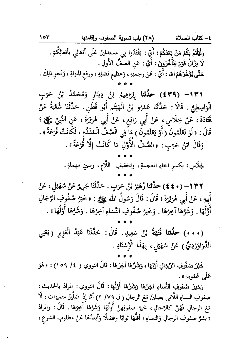 [438] وليأتم بكم من بعدكم أَي يقتدوا بِي مستدلين على أفعالي بأفعالكم لَا يزَال قوم يتأخرون أَي عَن الصَّفّ الأول حَتَّى يؤخرهم الله أَي عَن رَحمته وعظيم فَضله وَرفع الْمنزلَة وَنَحْو ذَلِك