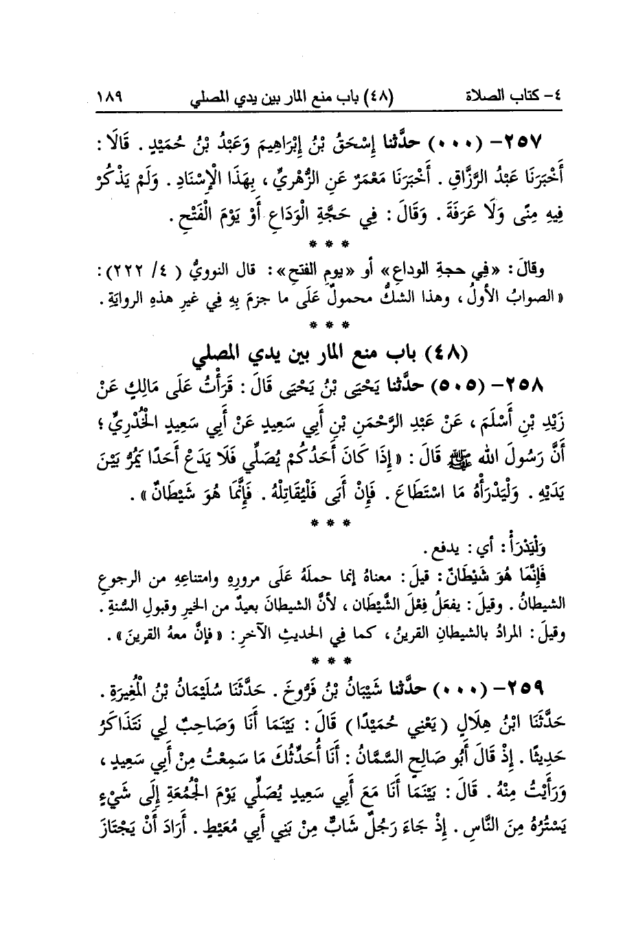 [504] أتان بِالْمُثَنَّاةِ الْأُنْثَى من الْحمر ناهزت قاربت ترتع ترعى يُصَلِّي بمنى تصرف وتمنع وتكتب بِالْألف وَالْيَاء وَالْأول مِنْهُمَا أَجود سميت منى لما يمنى بهَا من الدِّمَاء أَي يراق يُصَلِّي بِعَرَفَة قَالَ النَّوَوِيّ هُوَ مَحْمُول على أَنَّهُمَا قضيتان وَقَالَ فِي حجَّة الْوَدَاع أَو يَوْم الْفَتْح قَالَ النَّوَوِيّ الصَّوَاب الأول وَهَذَا الشَّك مَحْمُول على مَا جزم بِهِ فِي غير هَذِه الرِّوَايَة