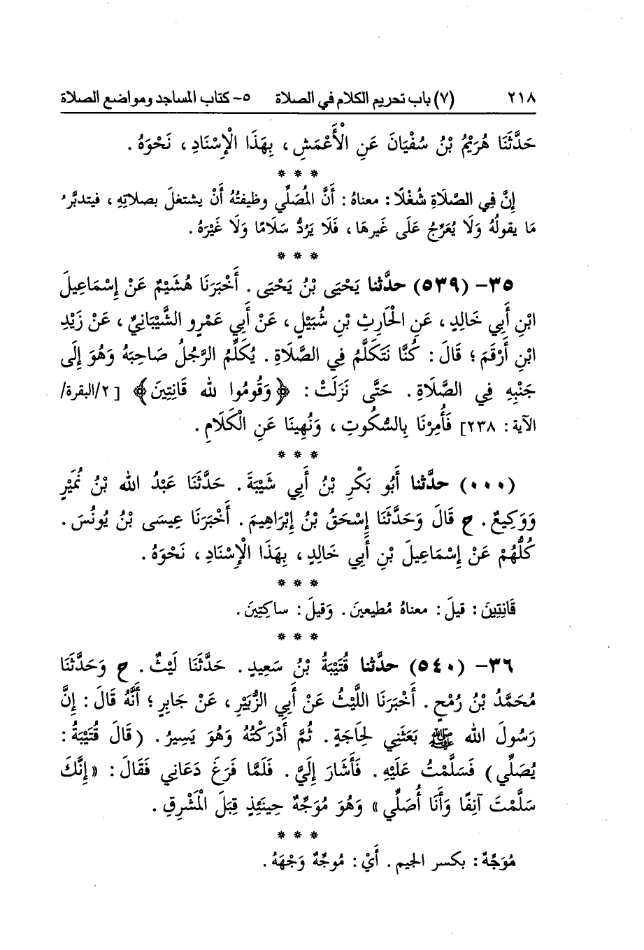 [538] إِن فِي الصَّلَاة شغلا مَعْنَاهُ أَن الْمُصَلِّي وظيفته أَن يشْتَغل بِصَلَاتِهِ فيتدبر مَا يَقُوله وَلَا يعرج على غَيرهَا فَلَا يرد سَلاما وَلَا غَيره