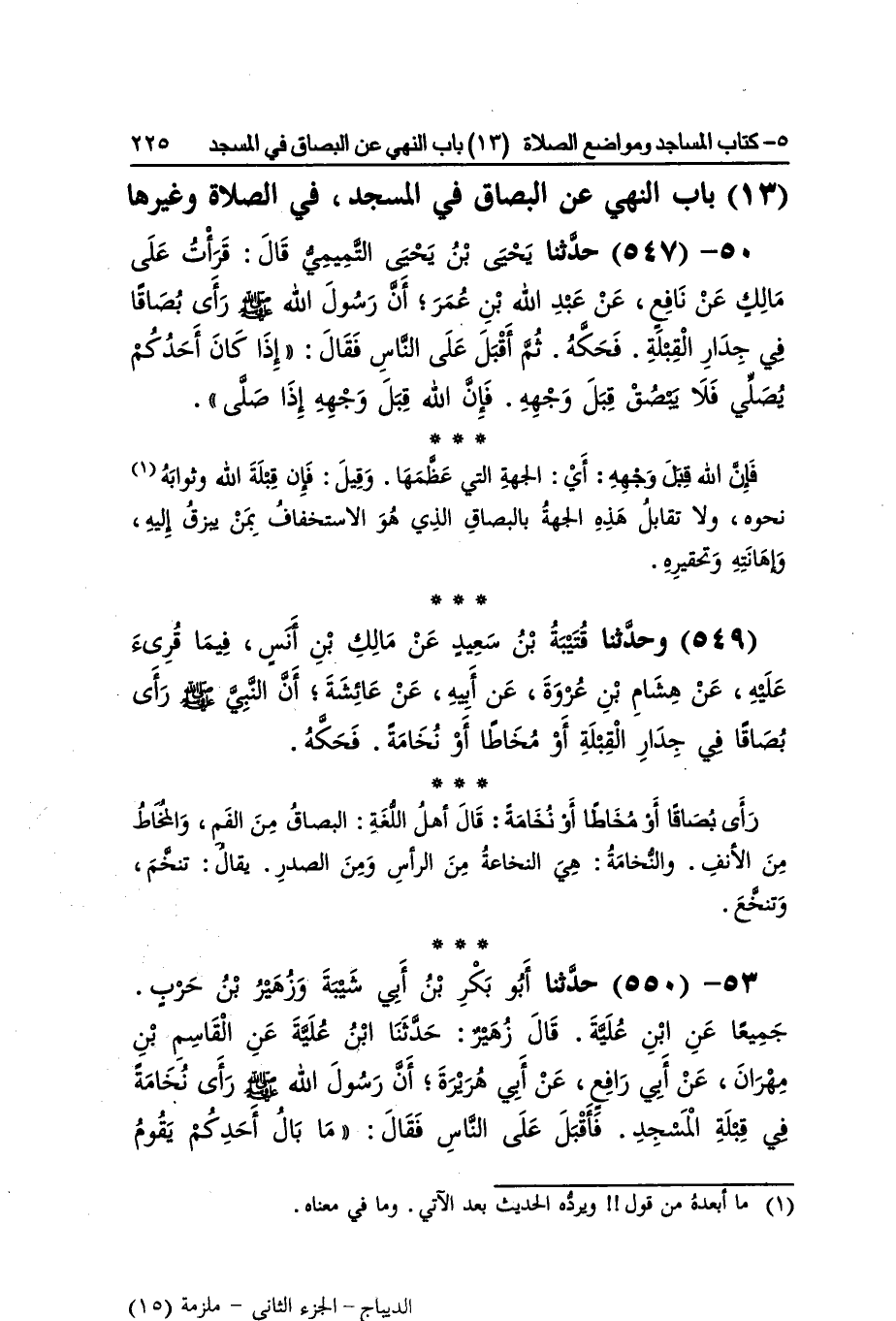[549] رأى بصاقا أَو مخاطا أَو نخامة قَالَ أهل اللُّغَة البصاق من الْفَم والمخاط من الْأنف والنخامة هِيَ النخاعة من الرَّأْس وَمن الصَّدْر يُقَال تنخم وتنخع