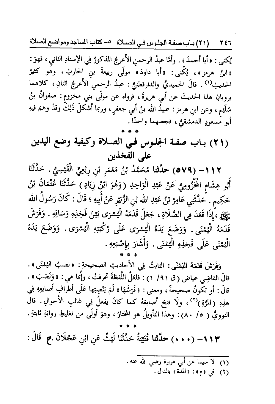 [578] عَن عبد الرَّحْمَن الْأَعْرَج هُوَ مولى بني مَخْزُوم هُوَ بن سعد المقعد يكنى أَبَا أَحْمد وَأما عبد الرَّحْمَن الْأَعْرَج الْمَذْكُور فِي الْإِسْنَاد الثَّانِي فَهُوَ بن هُرْمُز يكنى أَبَا دَاوُد مولى ربيعَة بن الْحَارِث وَهُوَ كثير الحَدِيث قَالَ الْحميدِي وَالدَّارَقُطْنِيّ عبد الرَّحْمَن الْأَعْرَج اثْنَان كِلَاهُمَا يرويان هَذَا الحَدِيث عَن أبي هُرَيْرَة فَرَوَاهُ عَن مولى بني مَخْزُوم صَفْوَان بن سليم وَعَن بن هُرْمُز عبيد الله بن أبي جَعْفَر وَرُبمَا أشكل ذَلِك وَقد وهم فِيهِ أَبُو مَسْعُود الدِّمَشْقِي فجعلهما وَاحِدًا