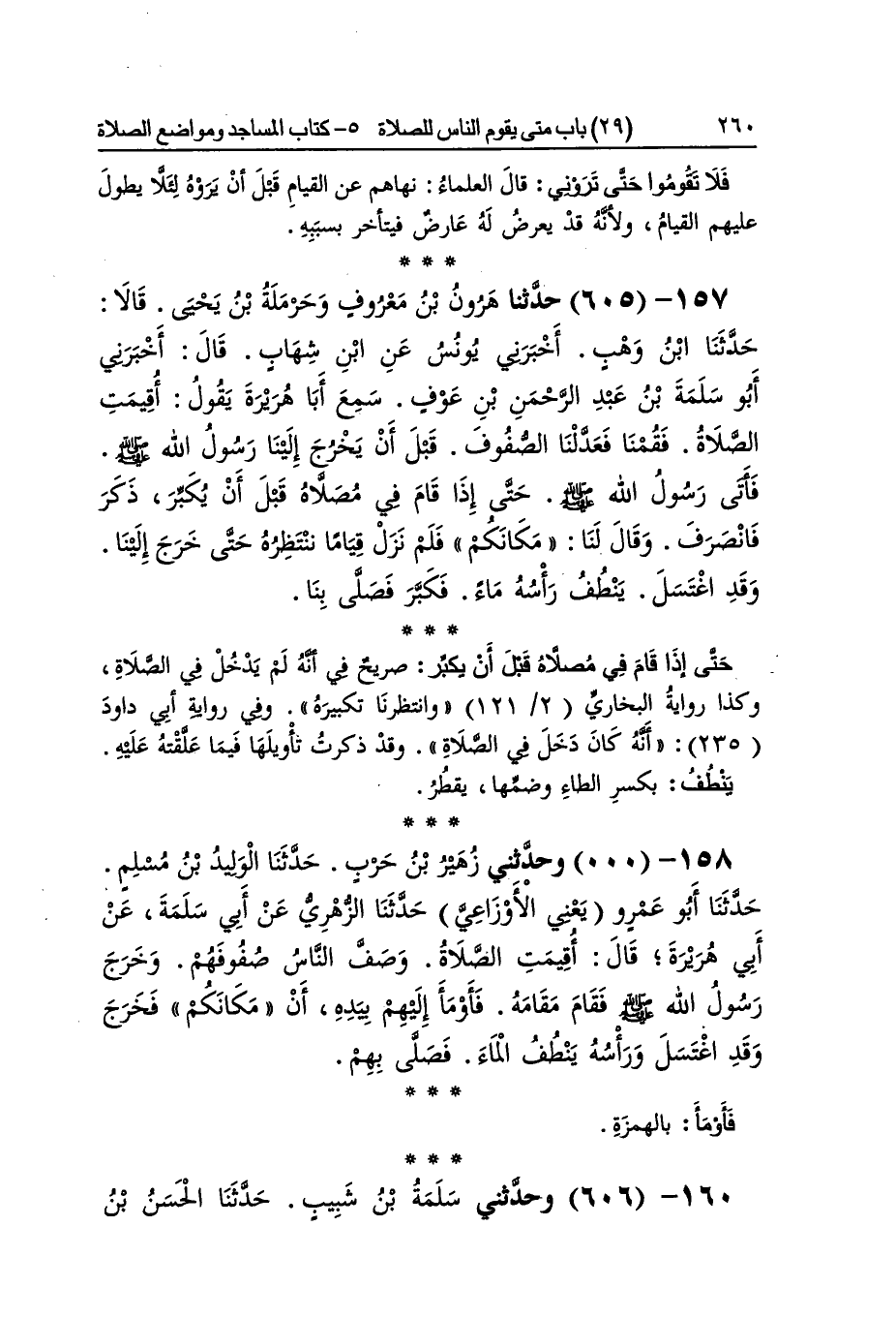 [605] حَتَّى إِذا قَامَ فِي مُصَلَّاهُ قبل أَن يكبر صَرِيح فِي أَنه لم يدْخل فِي الصَّلَاة وَكَذَا رِوَايَة البُخَارِيّ وَانْتَظرْنَا تكبيره وَفِي رِوَايَة أبي دَاوُد أَنه كَانَ دخل فِي الصَّلَاة وَقد ذكرت تَأْوِيلهَا فِيمَا علقته عَلَيْهِ ينطف بِكَسْر الطَّاء وَضمّهَا يقطر فَأَوْمأ بِالْهَمْزَةِ