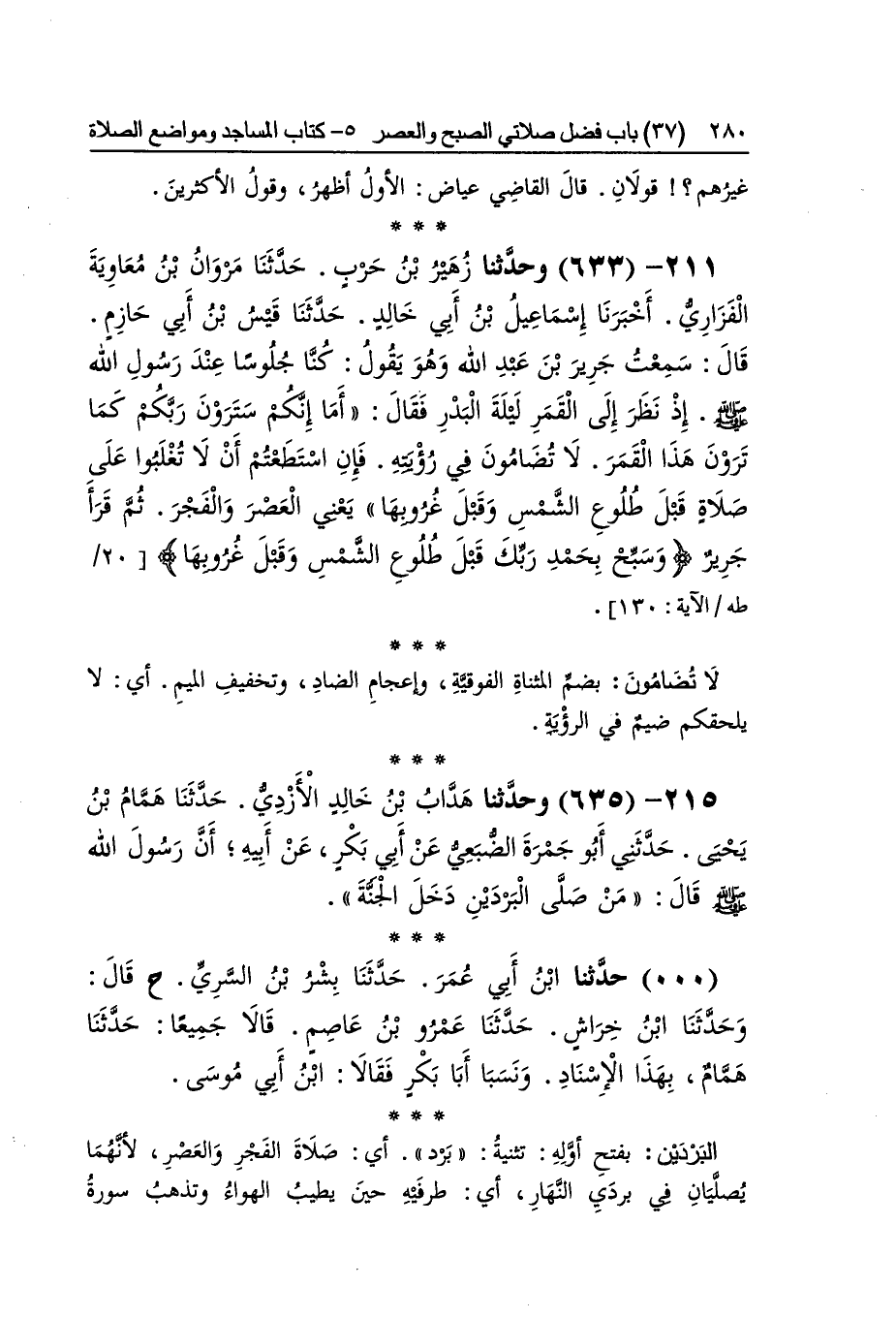 [633] لَا تضَامون بِضَم الْمُثَنَّاة الْفَوْقِيَّة وإعجام الضَّاد وَتَخْفِيف الْمِيم أَي لَا يلحقكم ضيم فِي الرُّؤْيَة