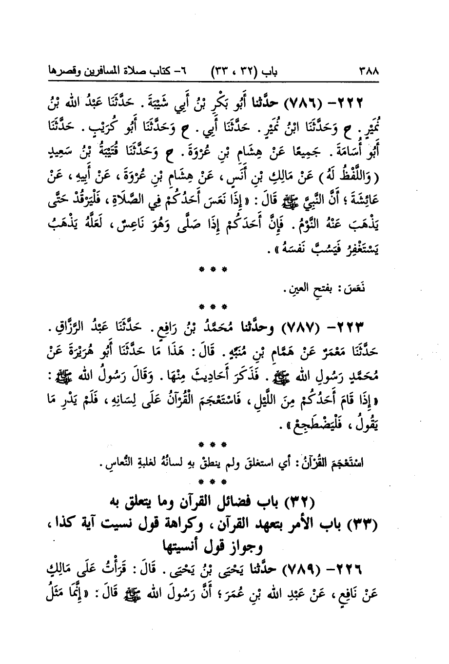 [787] استعجم الْقُرْآن أَي استغلق وَلم ينْطق بِهِ لِسَانه لغَلَبَة النعاس بَاب الْأَمر بتعهد الْقُرْآن
