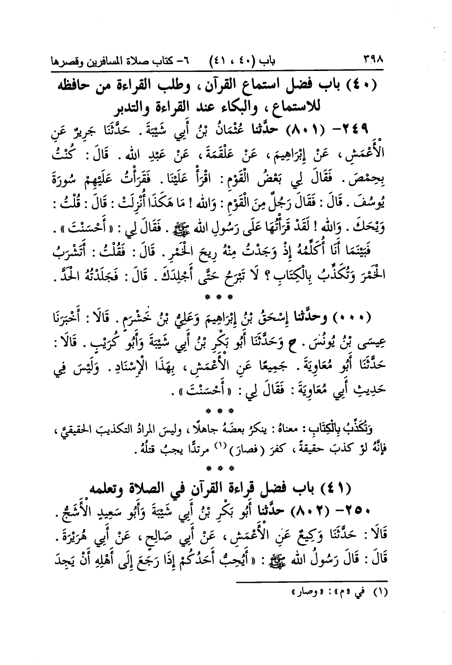 [801] وَتكذب بِالْكتاب مَعْنَاهُ يُنكر بعضه جَاهِلا وَلَيْسَ المُرَاد التَّكْذِيب الْحَقِيقِيّ فَإِنَّهُ لَو كذب حَقِيقَة كفر فَصَارَ مُرْتَدا يجب قَتله