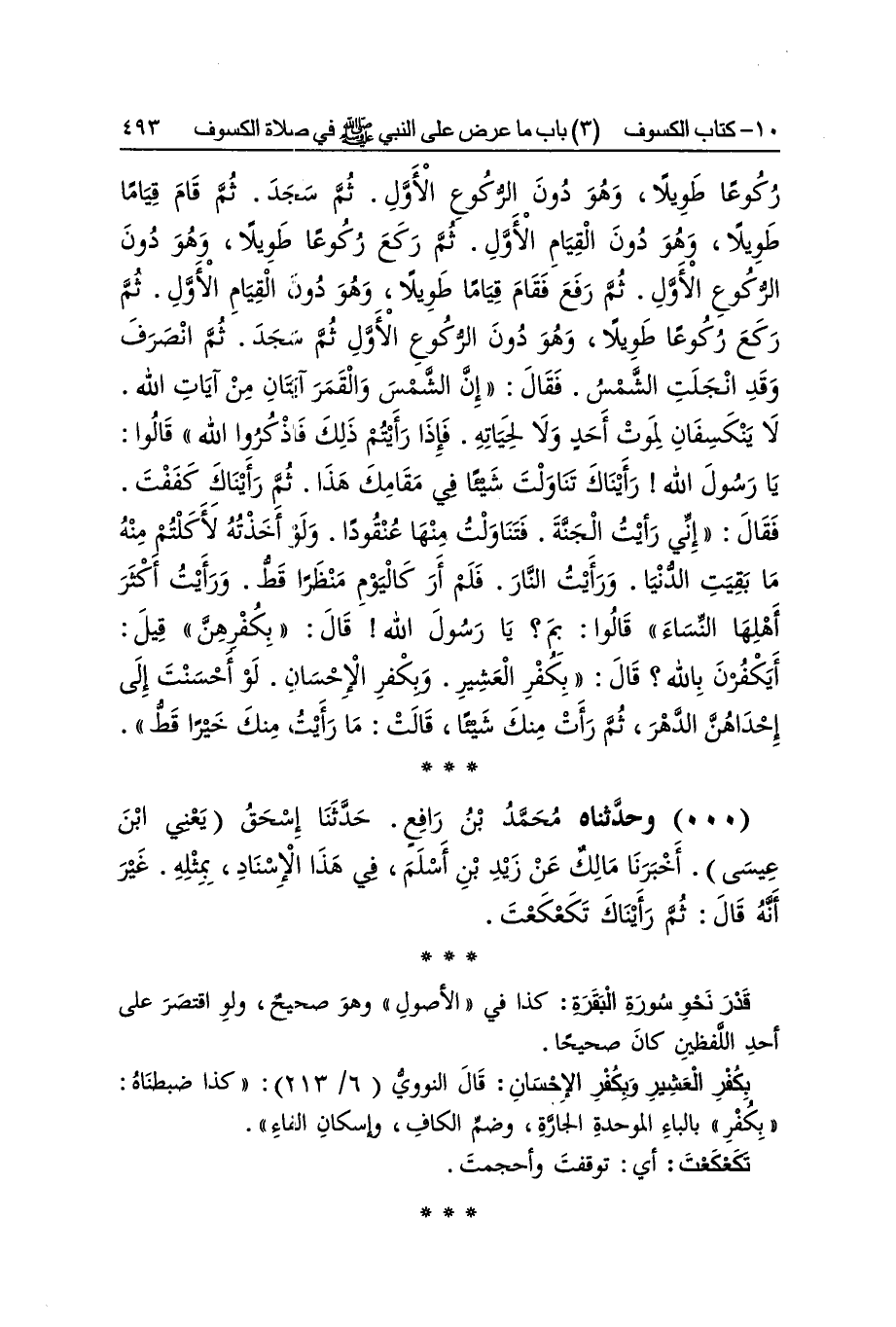[906] فزع يحْتَمل أَن يكون الْفَزع الَّذِي هُوَ الْخَوْف وَأَن يكون من الْفَزع الَّذِي هُوَ الْمُبَادرَة إِلَى الشَّيْء فَأَخْطَأَ بدرع مَعْنَاهُ أَنه لشدَّة سرعته واهتمامه بذلك أَرَادَ أَن يَأْخُذ رِدَاءَهُ فَأخذ درع بعض أهل الْبَيْت سَهوا وَلم يعلم بذلك لاشتغال قلبه فَلَمَّا علم أهل الْبَيْت أَنه ترك رِدَاءَهُ لحقه بِهِ إِنْسَان ثمَّ رفع فَأطَال ظَاهره أَنه طول الإعتدال الَّذِي يَلِي السُّجُود وَلَا ذكر لَهُ فِي سَائِر الرِّوَايَات وَقد نقل القَاضِي إِجْمَاع الْعلمَاء أَن لَا يطول فيجاب بِأَن هَذِه الرِّوَايَة شَاذَّة أَو المُرَاد بالإطالة تَنْفِيس الإعتدال ومده قَلِيلا لَا إطالته نَحْو الرُّكُوع مير فَيحسن الْوضُوء أَي يَأْتِي بِهِ تَاما بِكَمَال صفته وآدابه