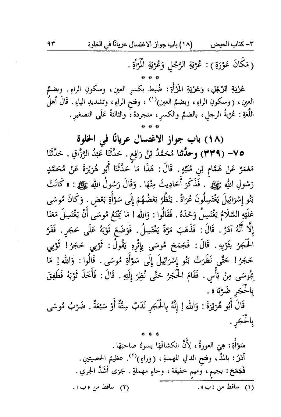 [338] عرية الرجل وعرية الْمَرْأَة ضبط بِكَسْر الْعين وَسُكُون الرَّاء وبضم الْعين وَسُكُون الرَّاء وبضم الْعين وَفتح الرَّاء وَتَشْديد الْيَاء قَالَ أهل اللُّغَة عرية الرجل بِالضَّمِّ وَالْكَسْر متجردة وَالثَّالِثَة على التصغير