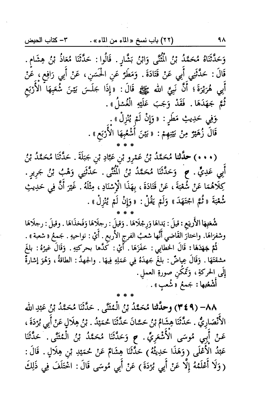 [348] شعبها الْأَرْبَع قيل يداها ورجلاها وَقيل رجلاها وفخذاها وَقيل رجلاها وشفراها وَاخْتَارَ القَاضِي أَنَّهَا شعب الْفرج الْأَرْبَع أَي نواحيه جمع شُعْبَة ثمَّ جهدها قَالَ الْخطابِيّ حفزها أَي كدها بحركته وَقَالَ غَيره بلغ مشقتها وَقَالَ عِيَاض بلغ جهده فِي عمله فِيهَا والجهد الطَّاقَة وَهُوَ إِشَارَة إِلَى الْحَرَكَة وَتمكن صُورَة الْعَمَل أشعبها جمع شعب