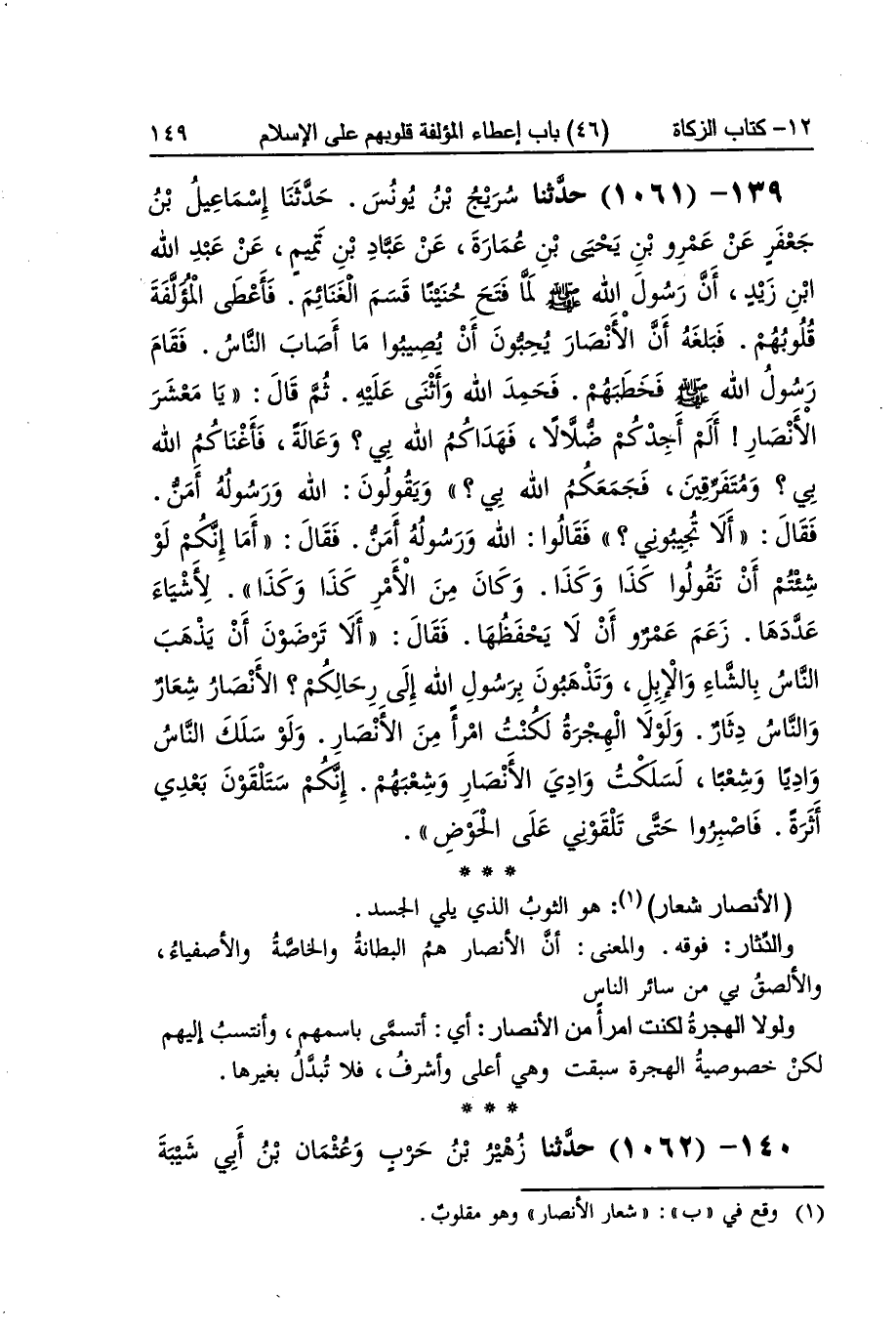 [1060] العبيد اسْم فرسه مرداس بترك الصّرْف لضَرُورَة الشّعْر علاثة بِضَم الْعين الْمُهْملَة وَتَخْفِيف اللَّام ومثلثة مخلد بن خَالِد الشعيري بِفَتْح الشين الْمُعْجَمَة وَكسر الْعين مَنْسُوب إِلَى الشّعير الْحبّ الْمَعْرُوف مَشْهُور تَرْجمهُ بن أبي حَاتِم فِي كتاب الْجرْح وَالتَّعْدِيل والحافظ أَبُو الْفضل مُحَمَّد بن طَاهِر الْمَقْدِسِي فِي كِتَابه رجال الصَّحِيحَيْنِ والحافظ عبد الْغَنِيّ الْمَقْدِسِي فِي الْكَمَال وَذكر القَاضِي عِيَاض أَنه لم يجد أحدا ذكره وَبسط الْكَلَام فِي إِنْكَار هَذَا الِاسْم وتعجب مِنْهُ النَّوَوِيّ