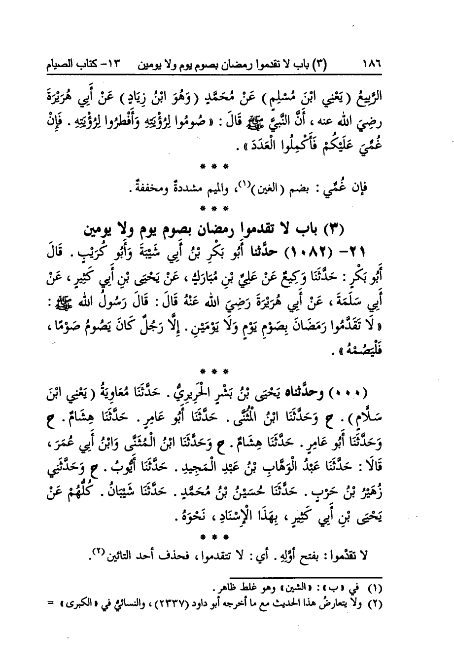 [1081] فَإِن غمي بِضَم الْغَيْن وَالْمِيم مُشَدّدَة ومخففة بَاب لَا تقدمُوا