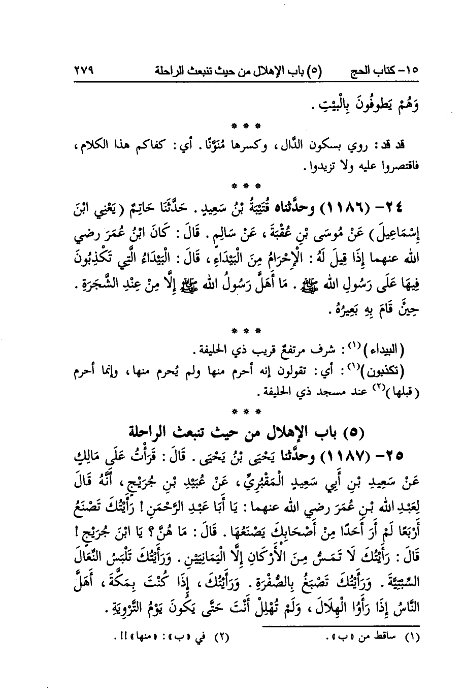 [1186] الْبَيْدَاء شرف مُرْتَفع قريب ذِي الحليفة تكذبون أَي تَقولُونَ إِنَّه أحرم مِنْهَا وَلم يحرم مِنْهَا وَإِنَّمَا أحرم قبلهَا عِنْد مَسْجِد ذِي الحليفة