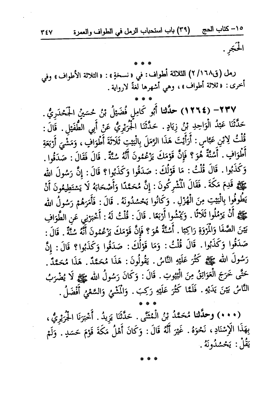 [1263] رمل الثَّلَاثَة أطواف فِي نُسْخَة الثَّلَاثَة الأطواف وَفِي أُخْرَى ثَلَاثَة أطواف وَهِي أشهرها لُغَة لَا رِوَايَة