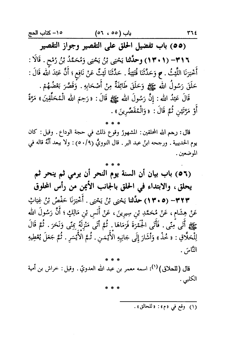 [1305] قَالَ للحلاق اسْمه معمر بن عبد الله الْعَدوي وَقيل خرَاش بن أُميَّة الْكَلْبِيّ