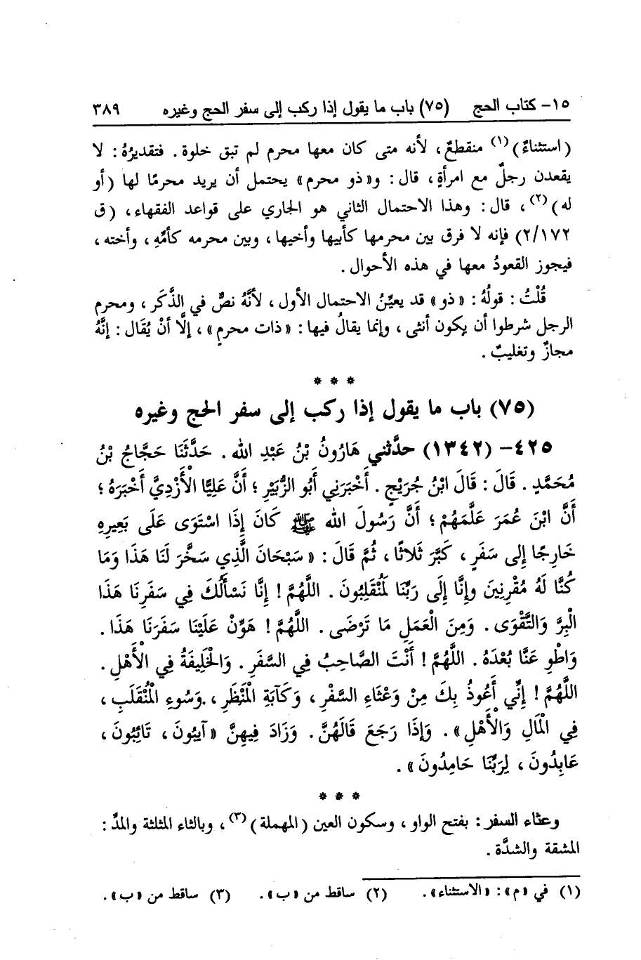 [1341] لَا يخلون رجل بِامْرَأَة إِلَّا وَمَعَهَا ذُو محرم قَالَ النَّوَوِيّ هَذَا اسْتثِْنَاء مُنْقَطع لِأَنَّهُ مَتى كَانَ مَعهَا محرم لم تبْق خلْوَة فتقديره لَا يقعدن رجل مَعَ امْرَأَة قَالَ وَذُو محرم يحْتَمل أَن يُرِيد محرما لَهَا أَو لَهُ قَالَ وَهَذَا الِاحْتِمَال الثَّانِي هُوَ الْجَارِي على قَوَاعِد الْفُقَهَاء فَإِنَّهُ لَا فرق بَين محرمها كأبيها وأخيها وَبَين محرمه كَأُمِّهِ وَأُخْته فَيجوز الْقعُود مَعهَا فِي هَذِه الْأَحْوَال قلت قَوْله ذُو قد يعين الِاحْتِمَال الأول لِأَنَّهُ نَص فِي الذّكر ومحرم الرجل شرطُوا أَن يكون أُنْثَى وَإِنَّمَا يُقَال فِيهَا ذَات محرم إِلَّا أَن يُقَال إِنَّه مجَاز وتغليب