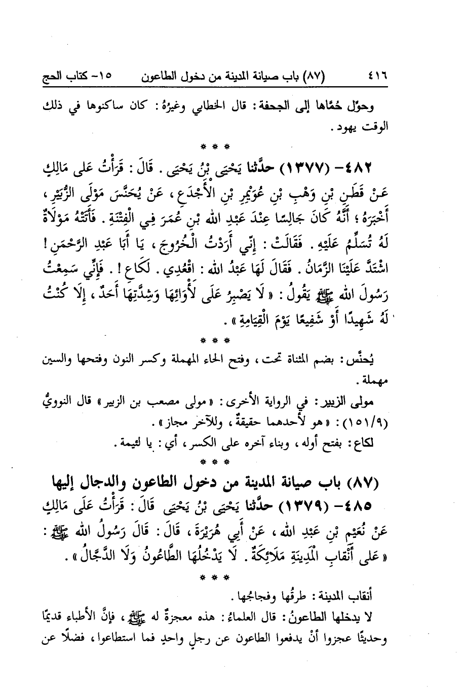 [1376] وبيئة بِهَمْزَة ممدودة أَي وخمة كَثِيرَة الْأَمْرَاض وحول حماها إِلَى الْجحْفَة قَالَ الْخطابِيّ وَغَيره كَانَ ساكنوها فِي ذَلِك الْوَقْت يهود