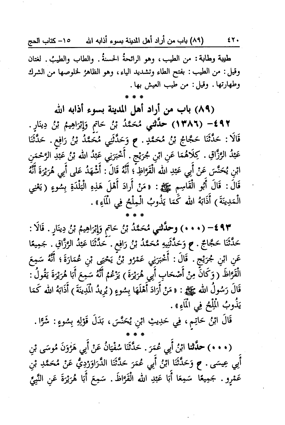 [1385] طيبَة وطابة من الطّيب وَهُوَ الرَّائِحَة الْحَسَنَة والطاب وَالطّيب لُغَتَانِ وَقيل من الطّيب بِفَتْح الطَّاء وَتَشْديد الْيَاء وَهُوَ الظَّاهِر لخلوصها من الشّرك وطهارتها وَقيل من طيب الْعَيْش بهَا