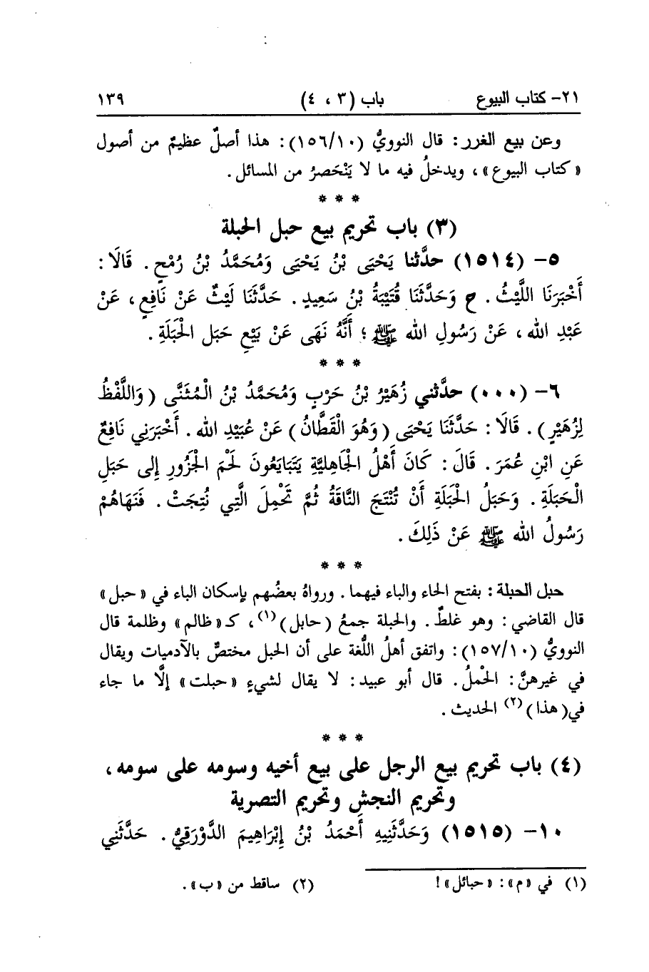 [1514] حَبل الحبلة بِفَتْح الْحَاء وَالْبَاء فيهمَا وَرَوَاهُ بَعضهم بِإِسْكَان الْبَاء فِي حَبل قَالَ القَاضِي وَهُوَ غلط والحبلة جمع حابل كظالم وظلمة قَالَ النَّوَوِيّ 10157 وَاتفقَ أه اللُّغَة على أَن الْحَبل مُخْتَصّ بالآدميات وَيُقَال فِي غَيْرهنَّ الْحمل قَالَ أَبُو عبيد لَا يُقَال لشَيْء حبلت إِلَّا مَا جَاءَ فِي هَذَا الحَدِيث