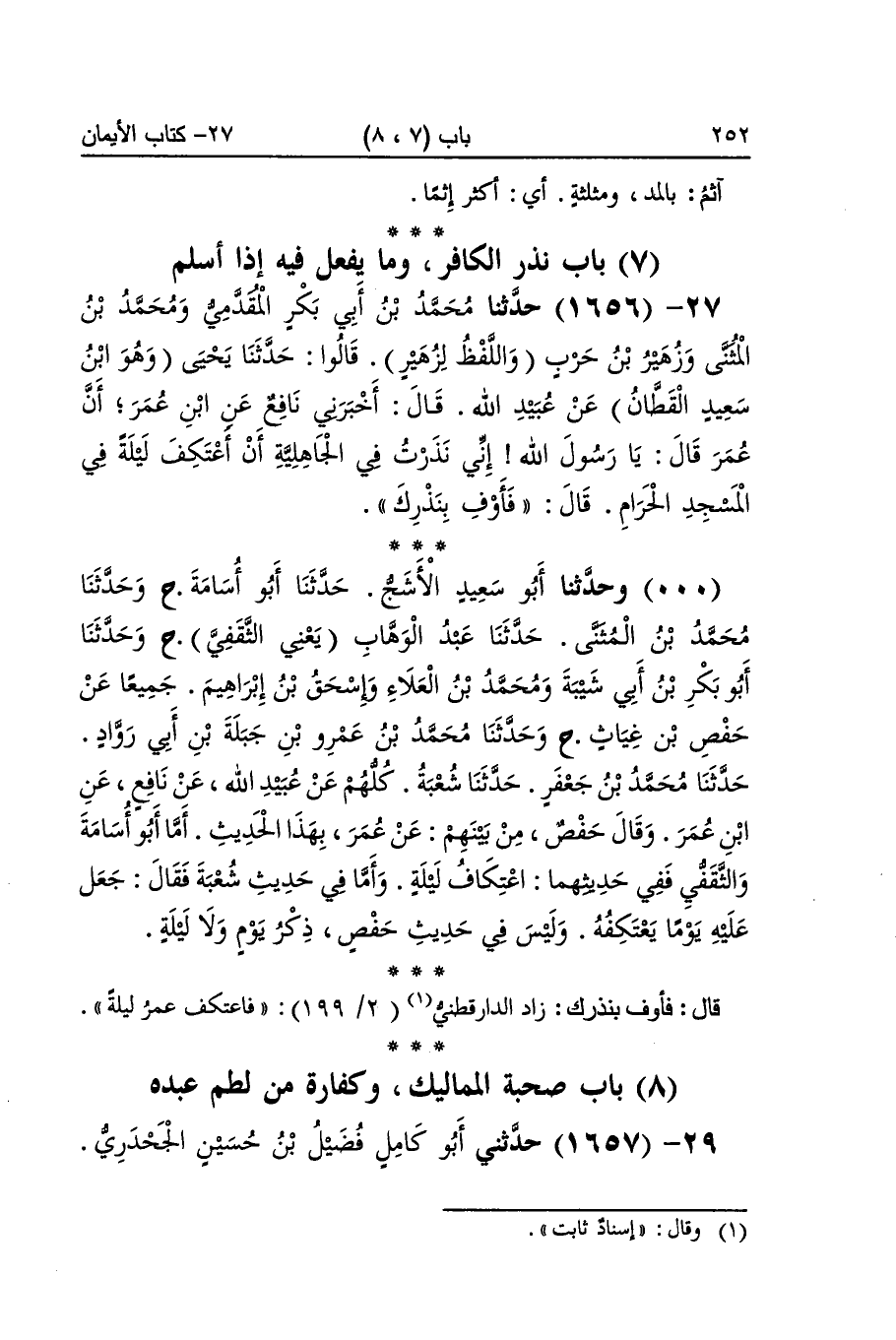 [1656] قَالَ فأوف بِنَذْرِك زَاد الدَّارَقُطْنِيّ فاعتكف عمر لَيْلَة
