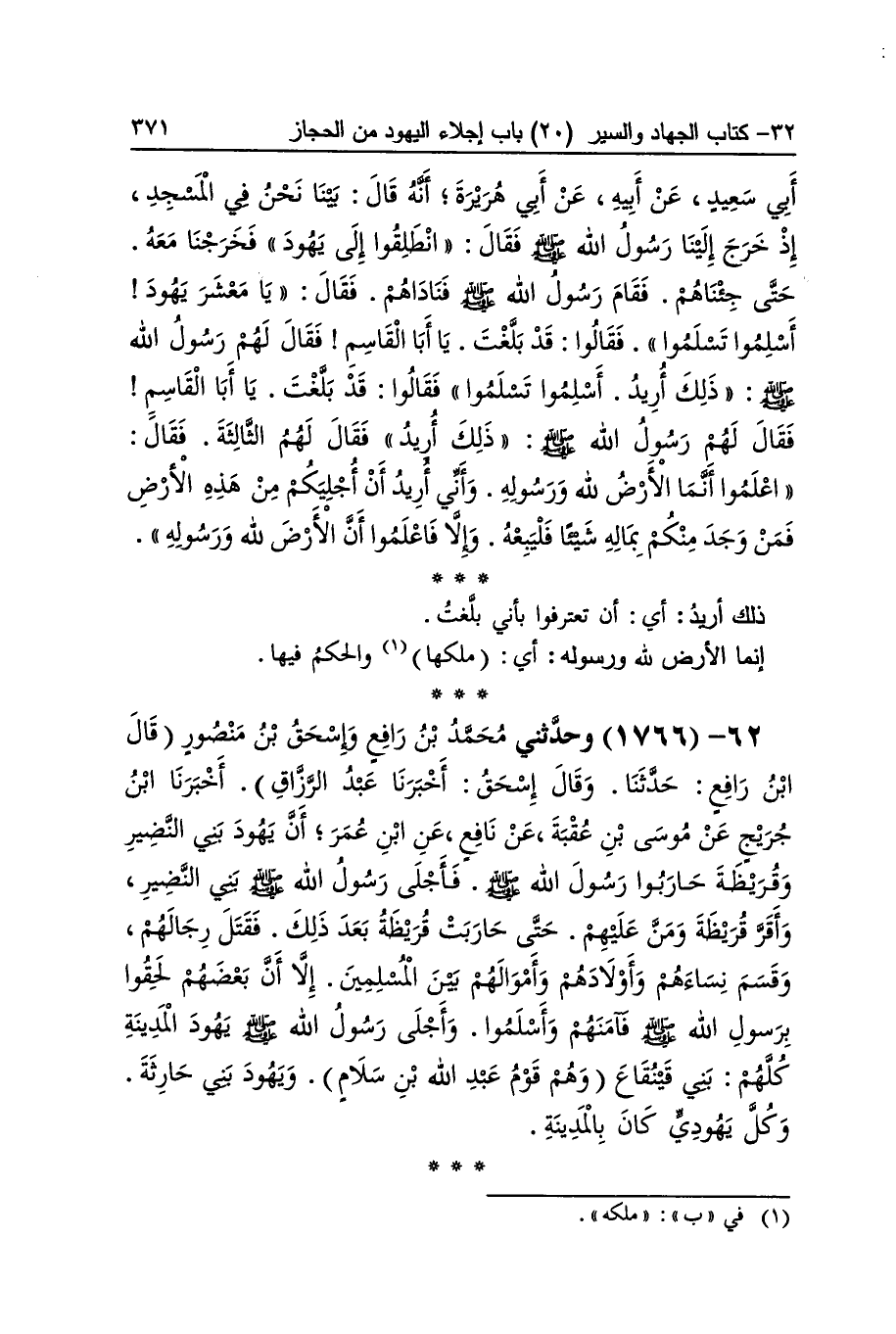 [1765] ذَلِك أُرِيد أَي أَن تعترفوا بِأَنِّي بلغت إِنَّمَا الأَرْض لله وَرَسُوله أَي ملكهَا وَالْحكم فِيهَا