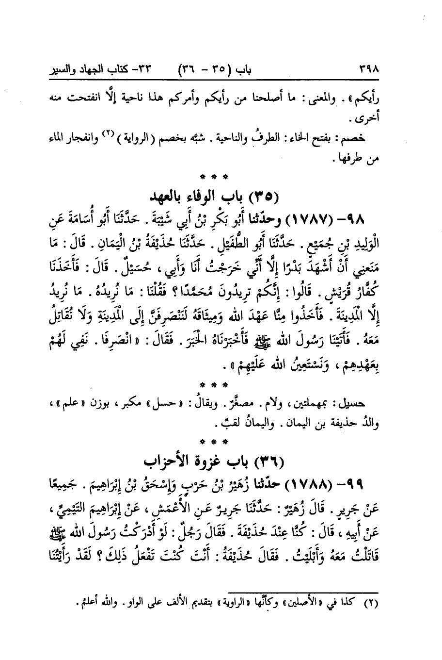 [1787] حسيل بمهملتين وَلَام مصغر وَيُقَال حسل مكبر بِوَزْن علم وَالِد حُذَيْفَة بن الْيَمَان واليمان لقب
