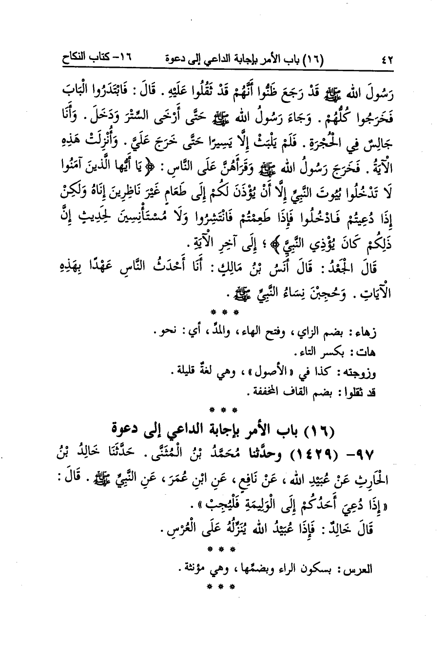 [1428] فاذكرها عَليّ أَي اخطبها لي من نَفسهَا أَن رَسُول الله صلى الله عَلَيْهِ وَسلم ذكرهَا بِفَتْح الْهمزَة من أَن أَي من أجل ذَلِك وَنَكَصت أَي رجعت أَن رَسُول الله صلى الله عَلَيْهِ وَسلم أطعمنَا الْخبز بِفَتْح الْهمزَة من أَن امْتَدَّ النَّهَار أَي ارْتَفع حَتَّى تَرَكُوهُ يَعْنِي لشبعهم زهاء بِضَم الزَّاي وَفتح الْهَاء وَالْمدّ أَي نَحْو هَات بِكَسْر التَّاء وَزَوجته كَذَا فِي الْأُصُول وَهِي لُغَة قَليلَة قد ثقلوا بِضَم الْقَاف المخففة