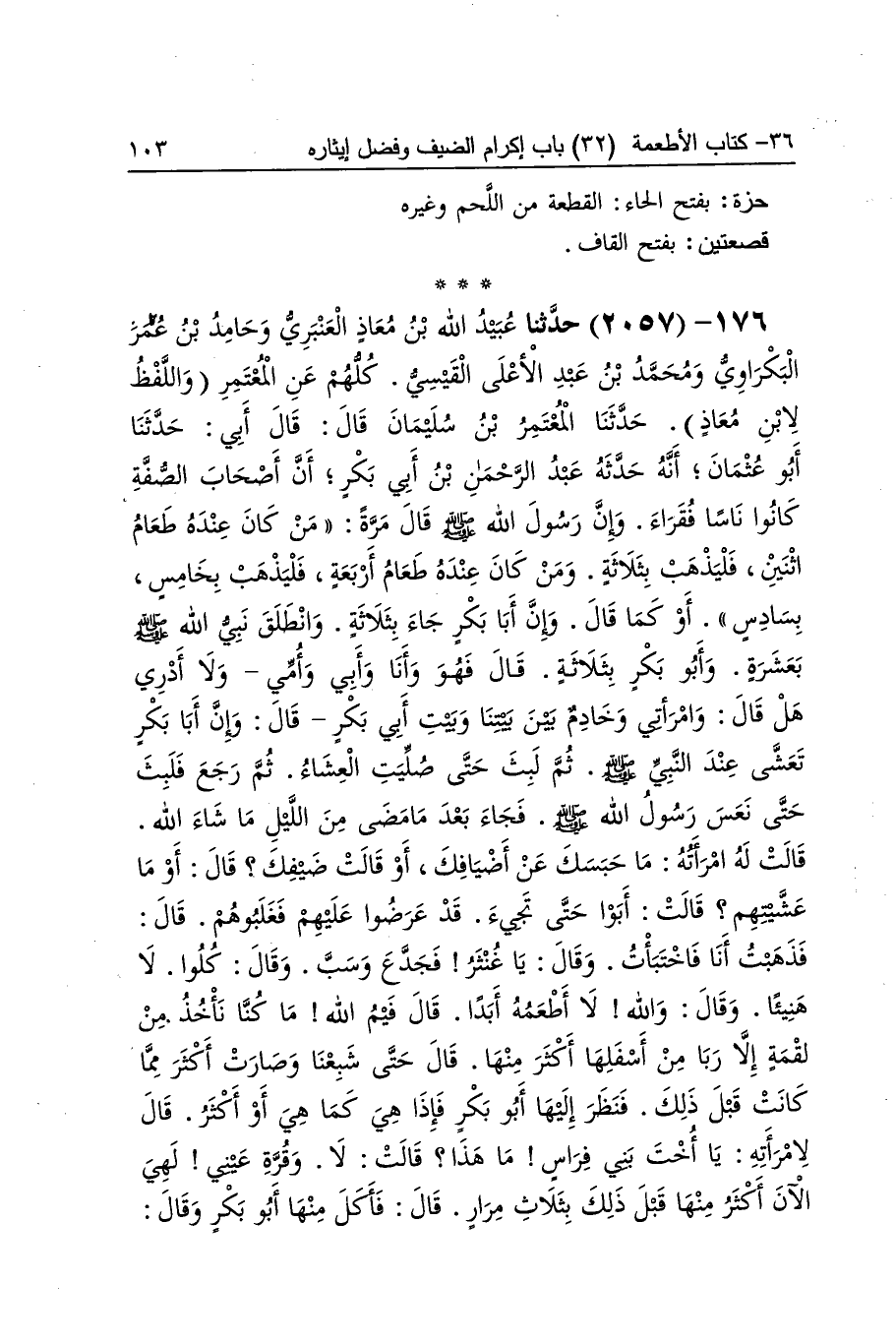 [2056] مشعان بِضَم الْمِيم وَسُكُون الشين الْمُعْجَمَة وَتَشْديد النُّون أَي منتفش الشّعْر مُتَفَرِّقه حزة بِفَتْح الْحَاء الْقطعَة من اللَّحْم وَغَيره قصعتين بِفَتْح الْقَاف