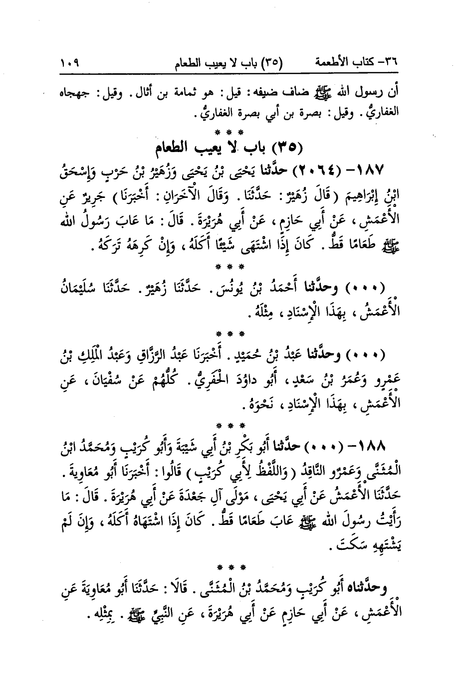 [2063] أَن رَسُول الله صلى الله عَلَيْهِ وَسلم ضاف ضَيفه قيل هُوَ ثُمَامَة بن أَثَال وَقيل جَهْجَاه الْغِفَارِيّ وَقيل بصرة بن أبي بصرة الْغِفَارِيّ