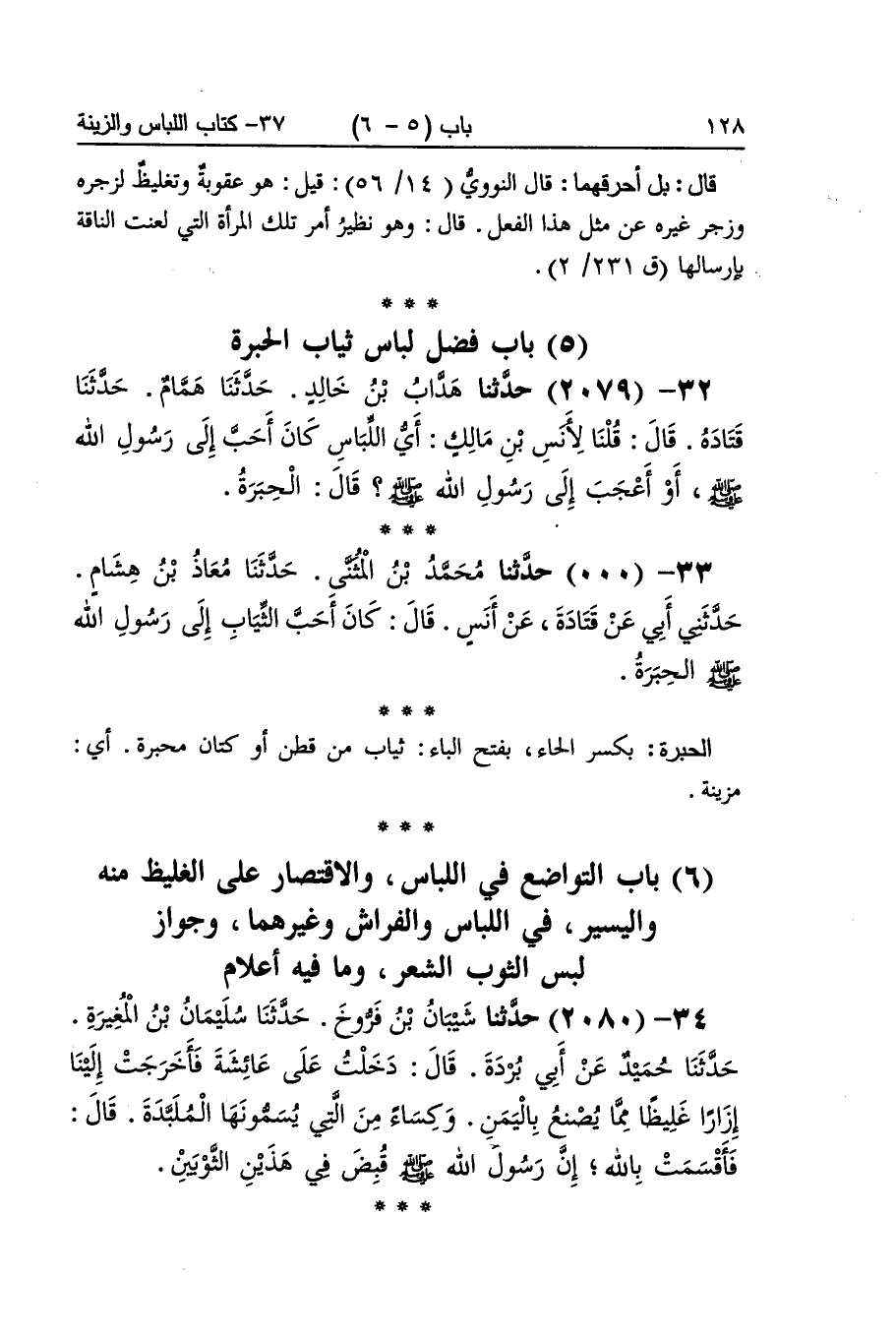 [2079] الْحبرَة بِكَسْر الْحَاء بِفَتْح الْبَاء ثِيَاب من قطن أَو كتَّان محبرة أَي مزينة