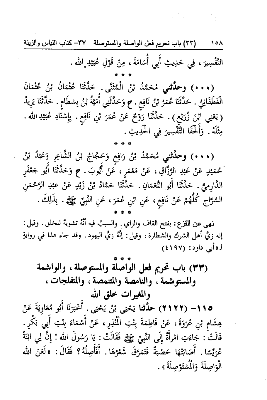 [2120] نهى عَن القزع بِفَتْح الْقَاف وَالزَّاي وَالسَّبَب فِيهِ أَنه تَشْوِيه لِلْخلقِ وَقيل إِنَّه زِيّ أهل الشّرك والشطارة وَقيل إِنَّه زِيّ الْيَهُود وَقد جَاءَ هَذَا فِي رِوَايَة لأبي دَاوُد