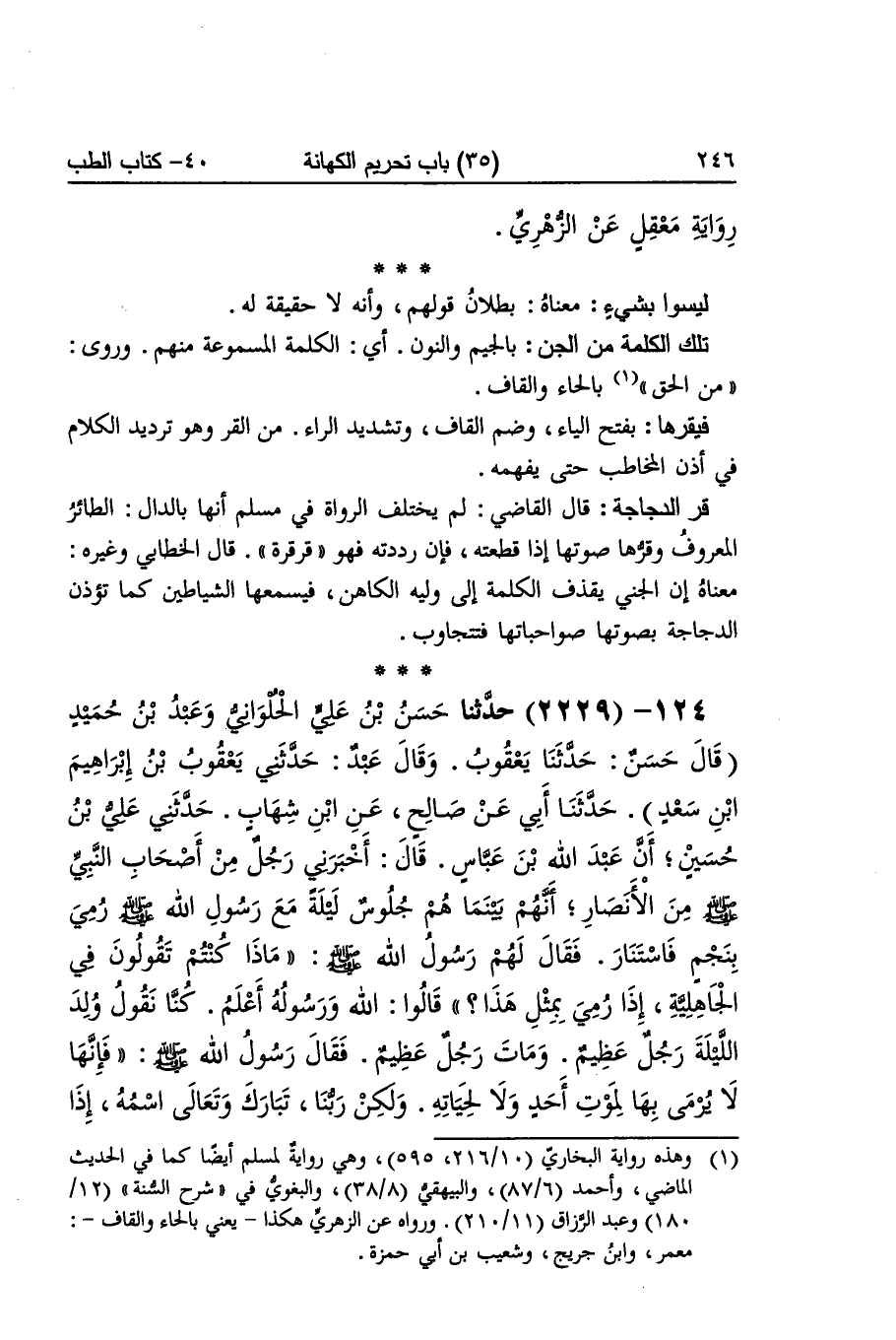 [2228] يَخْطفهَا بِفَتْح الطَّاء وَحكي كسرهَا أَي يَأْخُذهَا بِسُرْعَة فيقذفها أَي يلقيها كذبة بِفَتْح الْكَاف وَكسرهَا وَسُكُون الذَّال لَيْسُوا بِشَيْء مَعْنَاهُ بطلَان قَوْلهم وَأَنه لَا حَقِيقَة لَهُ تِلْكَ الْكَلِمَة من الْجِنّ بِالْجِيم وَالنُّون أَي الْكَلِمَة المسموعة مِنْهُم وروى من الْحق بِالْحَاء وَالْقَاف فيقرها بِفَتْح الْيَاء وَضم الْقَاف وَتَشْديد الرَّاء من القر وَهُوَ ترديد الْكَلَام فِي أذن الْمُخَاطب حَتَّى يفهمهُ قر الدَّجَاجَة قَالَ القَاضِي لم يخْتَلف الروَاة فِي مُسلم أَنَّهَا بِالدَّال الطَّائِر الْمَعْرُوف وقرها صَوتهَا إِذا قطعته فَإِن رَددته فَهُوَ قرقرة قَالَ الْخطابِيّ وَغَيره مَعْنَاهُ إِن الجني يقذف الْكَلِمَة إِلَى وليه الكاهن فيسمعها الشَّيَاطِين كَمَا تؤذن الدَّجَاجَة بصوتها صواحباتها فتتجاوب