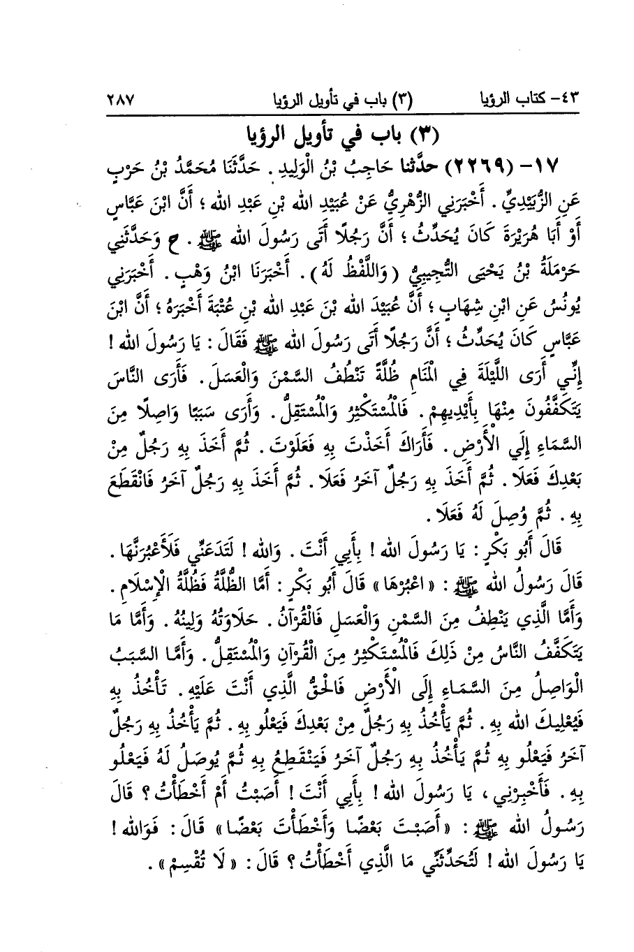 [2267] من رَآنِي فِي الْمَنَام فقد رأى الْحق أَي الرُّؤْيَا الصَّحِيحَة