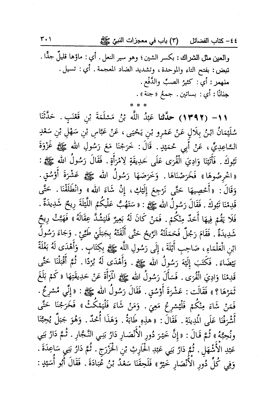 [706] وَالْعين مثل الشرَاك بِكَسْر الشين وَهُوَ سير النَّعْل أَي مَاؤُهَا قَلِيل جدا تبض بِفَتْح التَّاء وَالْمُوَحَّدَة وَتَشْديد الضَّاد الْمُعْجَمَة أَي تسيل منهمر أَي كثير الصب وَالدَّفْع جنَانًا أَي بساتين جمع جنَّة