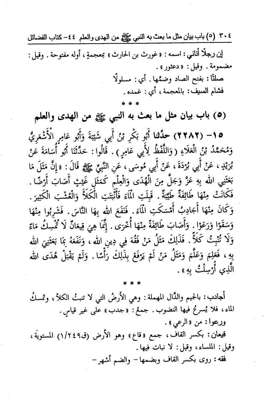[843] العضاه بإهمال الْعين وإعجام الضَّاد إِن رجلا أَتَانِي اسْمه غورث بن الْحَارِث بِمُعْجَمَة أَوله مَفْتُوحَة وَقيل مَضْمُومَة وَقيل دعثور صَلتا بِفَتْح الصَّاد وَضمّهَا أَي مسلولا فَشَام السَّيْف بِالْمُعْجَمَةِ أَي غمده